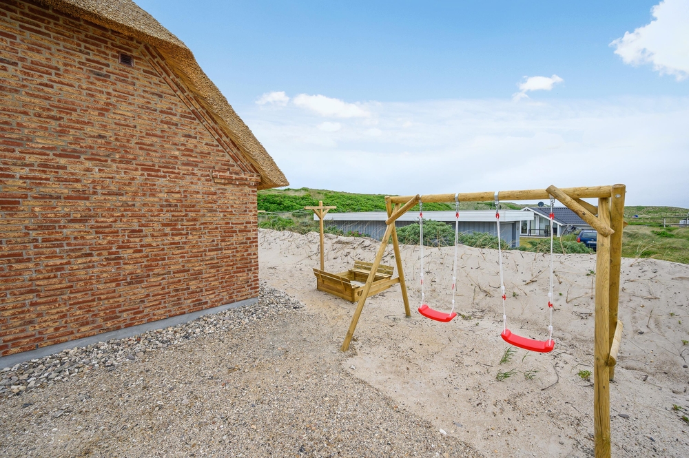 Für die Kinder sind sowohl eine Schaukel als auch ein Sandkasten vorhanden, die sicher große Freude bereiten werden. Das Sommerhaus liegt in der ersten Dünenreihe nur 50m vom Strand entfernt und in nur wenigen Minuten könnt ihr den kilometerlangen Sandstrand erreichen, der soweit reicht wie ihr schauen könnt. Auch an kühleren Tagen könnt ihr euch nach langen Spaziergängen mit eurem Hund in der hauseigenen Sauna wieder aufwärmen.