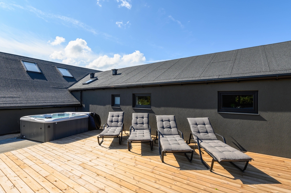 Auf der westgewendeten Terrasse, die ebenfalls abgeschirmt ist, könnt ihr die Abendsonne genießen, während ihr gemeinsam grillt und den lauen Sommerabend ausklingen lasst.