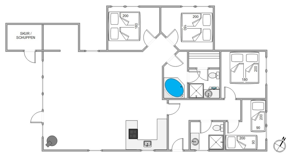 Im Bjerregårdsvej 68 steht dieses ansprechende Holzhaus, in dem für bis zu 8 Personen und 2 Hunde Platz ist, so dass die ganze Familie mitkommen kann. Es gibt 4 Schlafzimmer, so dass viel Platz für das Privatleben vorhanden ist, und der Küchen- und Wohnbereich viel Platz für gesellige Stunden bietet.