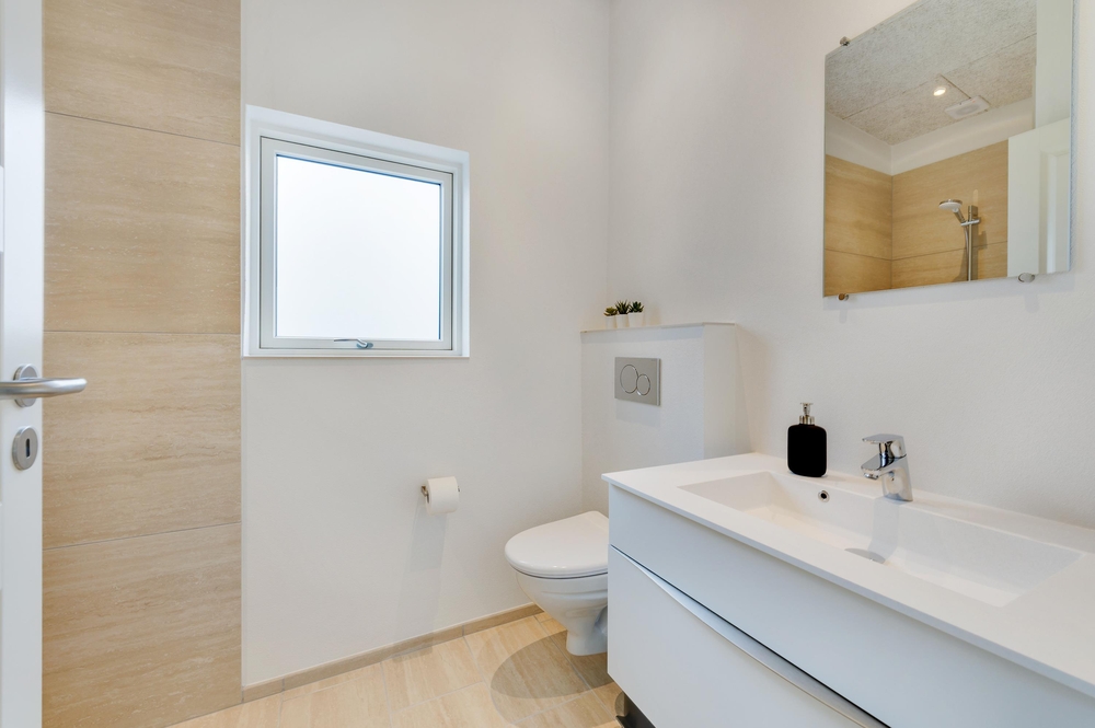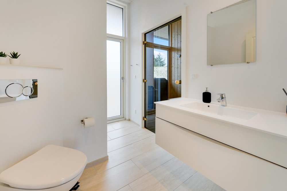 Neben den 4 Schlafzimmern findet ihr zwei moderne Badezimmer wobei eines einen direkten Zugang zur Sauna hat.