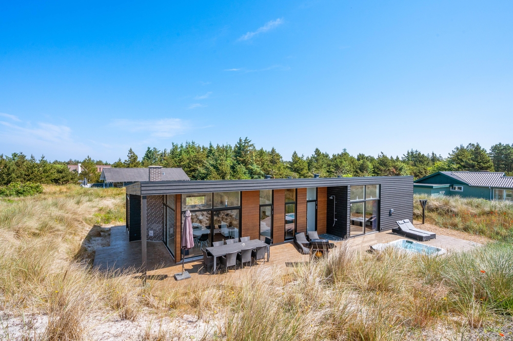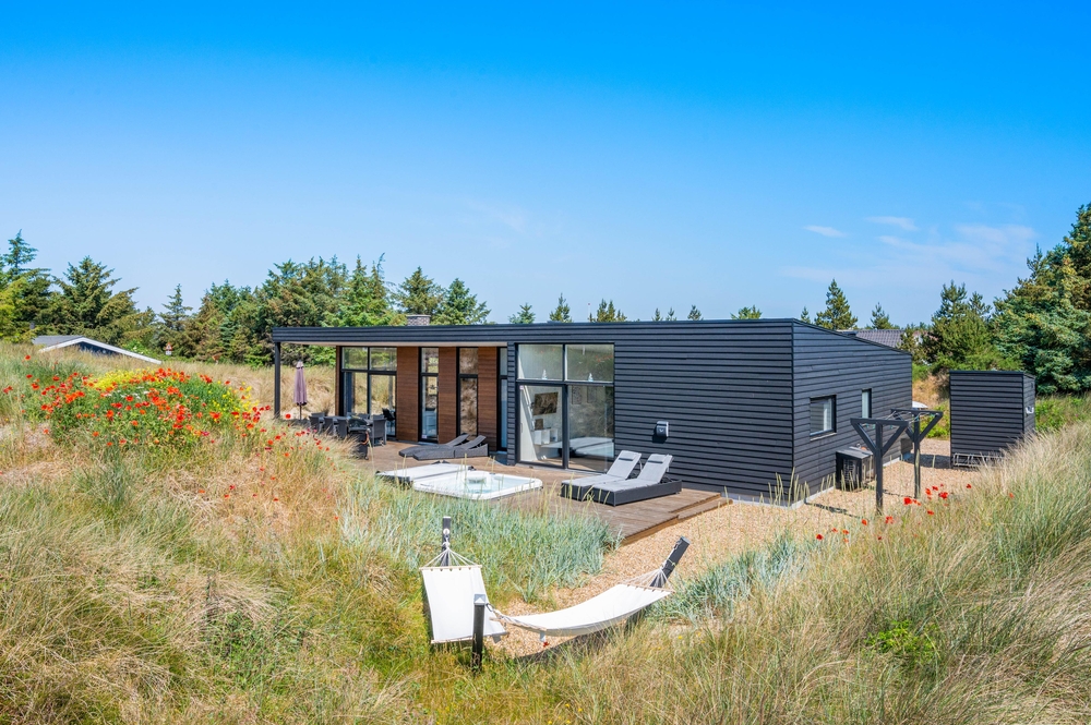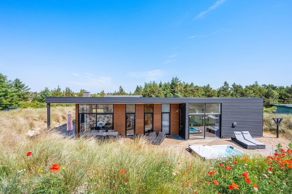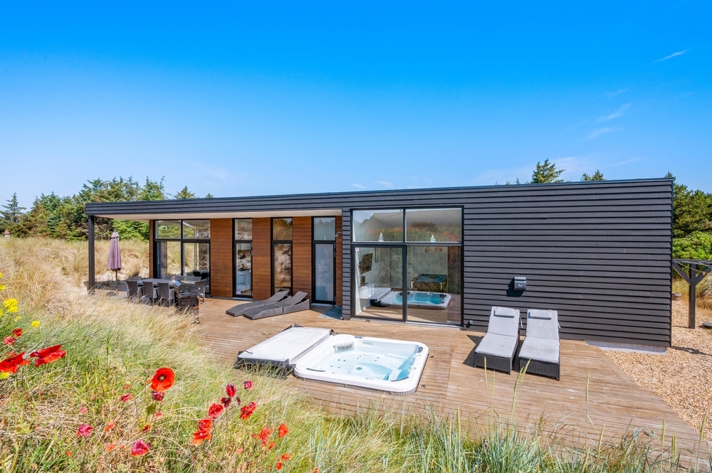 Wollt ihr auch mit der ganzen Familie in den Urlaub und dabei nicht auf Luxus verzichten, dann ist dieses 8 Personen Ferienhaus genau das Richtige. Das im Jahr 2020 im Bungalowstil entstandene Haus bietet einen fantastischen Außenbereich mit Außenwhirlpool und einer geräumigen Terrasse, die fast das ganze Haus umschließt und einen geräumigen Innenbereich mit Sauna und Aktivitätsraum.