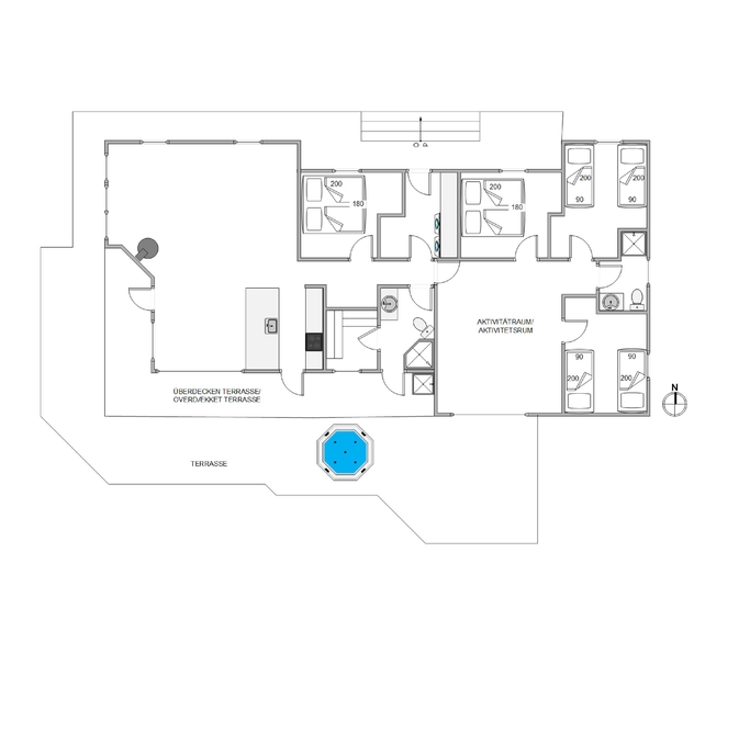Nach dem Abendessen können die Kinder im Aktivitätsraum spielen oder Fernsehschauen, während die Erwachsenen sich in der Sauna oder im Außenwhirlpool entspannen. Im Haus finden sich viele moderne Annehmlichkeiten, so findet ihr gratis und blitzschnelles Internet von 1000/1000Mbit, eine Bluetooth-Docking-Station, Waschmaschine, Trockner und eine energiesparende Wärmepumpe.