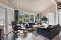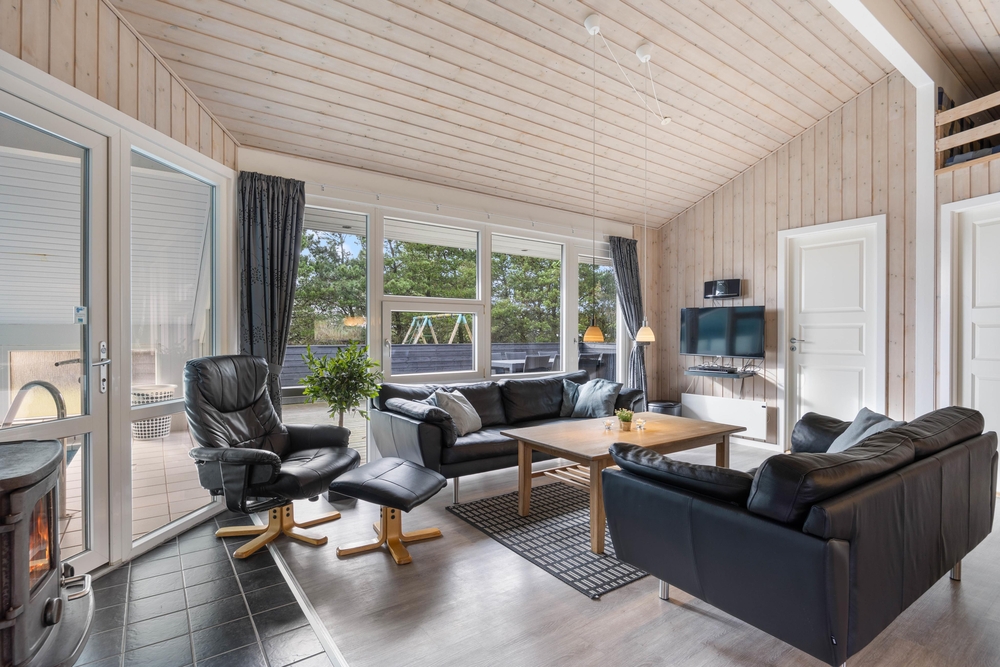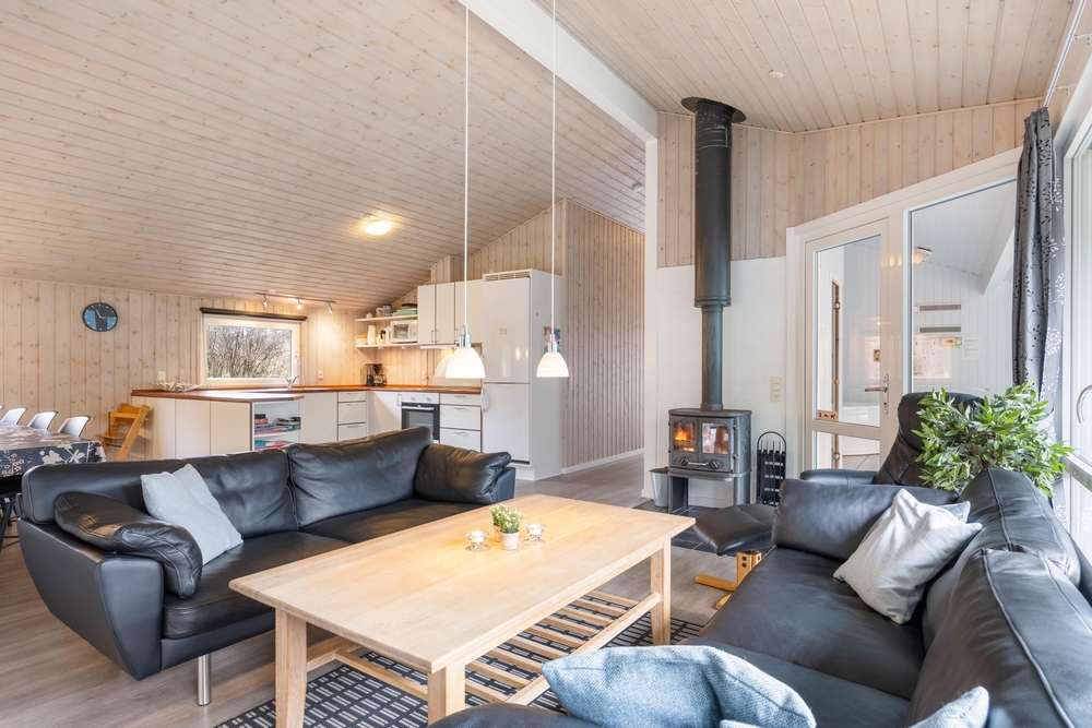 Der freundliche Wohnbereich lädt zu geselligen Spiele- und Filmabende ein, wobei der Kaminofen für einige wohlige Wärme an kühleren Tagen sorgt.
