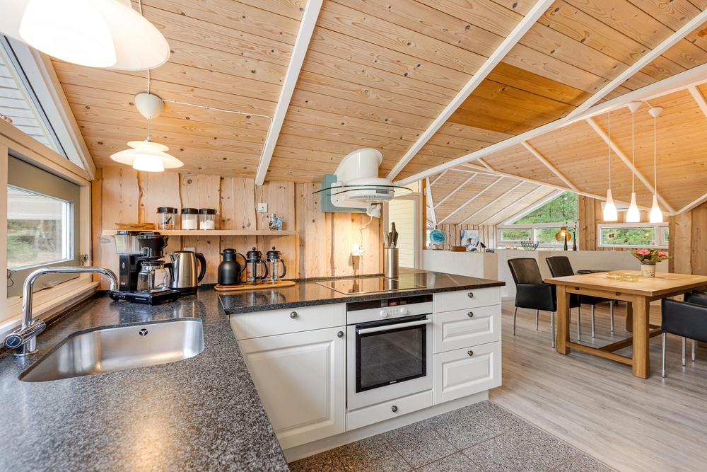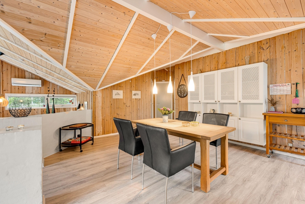 Der schön eingerichtete Wohnbereich versprüht die dänische ?Hygge? und lädt zu vielen schönen Stunden ein, wo es sich die Familie auf dem bequemen Sofa gemütlich machen kann oder bei einem Spieleabend am Esstisch amüsiert. Die Wärmepumpe spart sowohl Stromkosten und sorgt für ein angenehmes Innenklima.