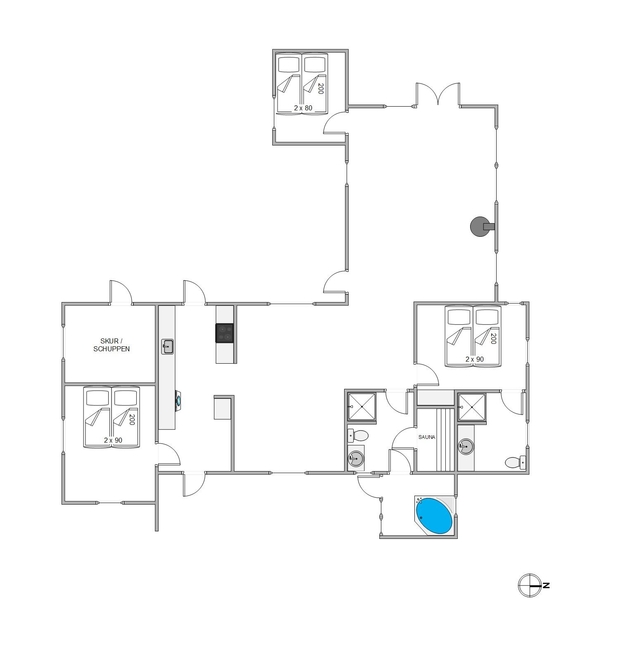 Der Außenbereich bietet euch 2 schöne Terrassen, auf denen ihr die warmen Urlaubstage verbringen könnt. Eine Terrasse ist nach Osten ausgerichtet und der perfekte Ort, um am frühen Morgen die erste Tasse frisch aufgebrühten Kaffees zu genießen, während der Rest des Hauses noch ein wenig länger in den Federn liegt. Die andere Terrasse ist nach Westen ausgerichtet und ist der perfekte Ort für einen Grillabend mit Sonnenuntergangsstimmung sowie inklusive dem Rauschen der Brandung ? mehr Entspannung geht kaum.