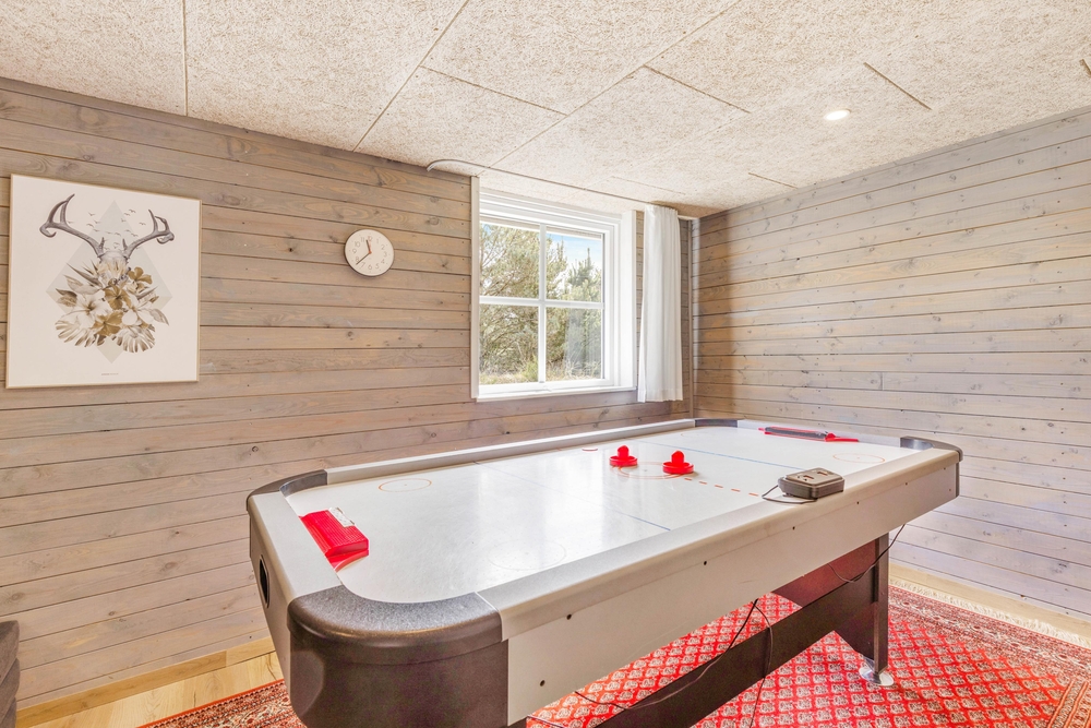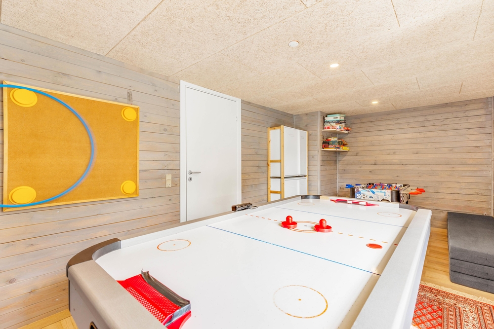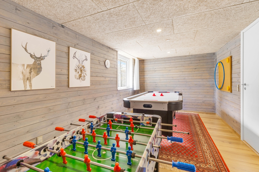 Ein weiteres Highlight des Ferienhauses ist der Aktivitätsraum. Insbesondere eure Kinder und Junggebliebenen werden sich gegenseitig im Airhockey oder Tischfußball herausfordern, während der Rest der Familie auf dem Sofa entspannt und vielleicht schon den nächsten Urlaubstag plant.