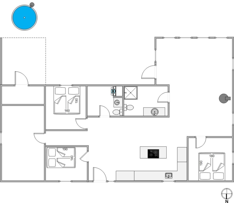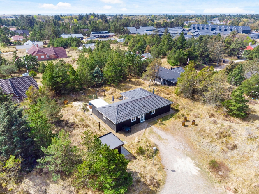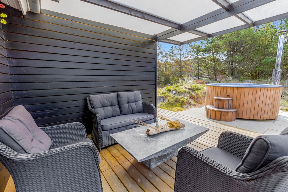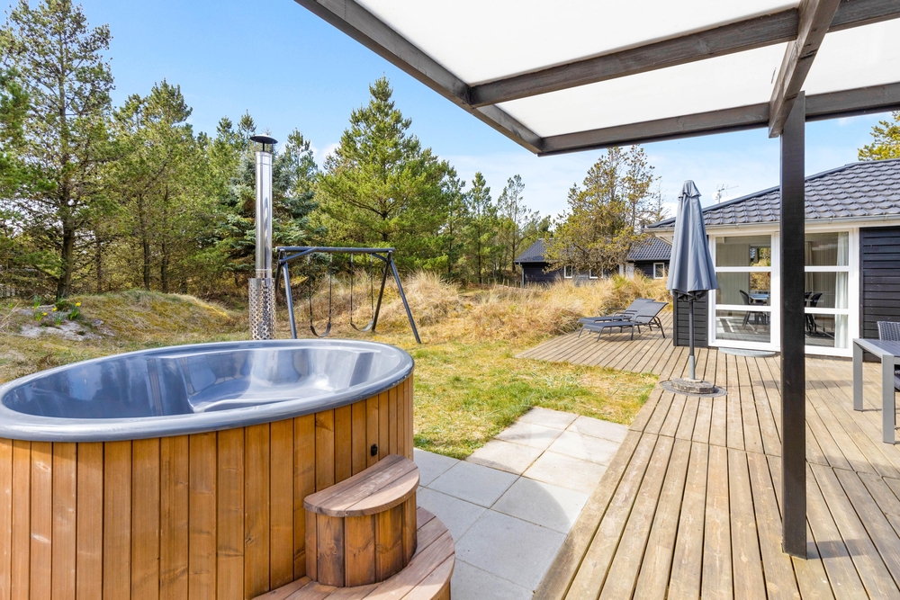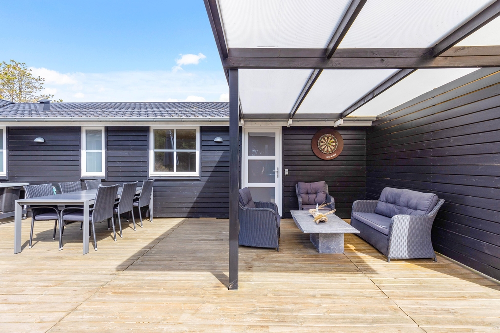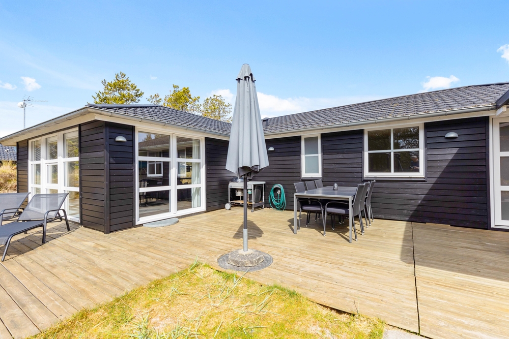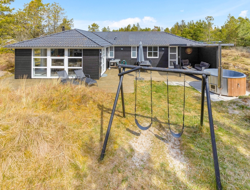 In der schönen und vielseitigen Natur Blåvands zwischen Dünen und hohen Tannen liegt dieses stilvolle Ferienhaus mit Aktivitätsraum. Es hat eine tolle Lage und ihr könnt euch auf einen ruhigen und entspannten Urlaub an der dänischen Westküste freuen. Auf der schönen Terrasse könnt ihr bei jedem Wetter die umliegende Natur genießen.