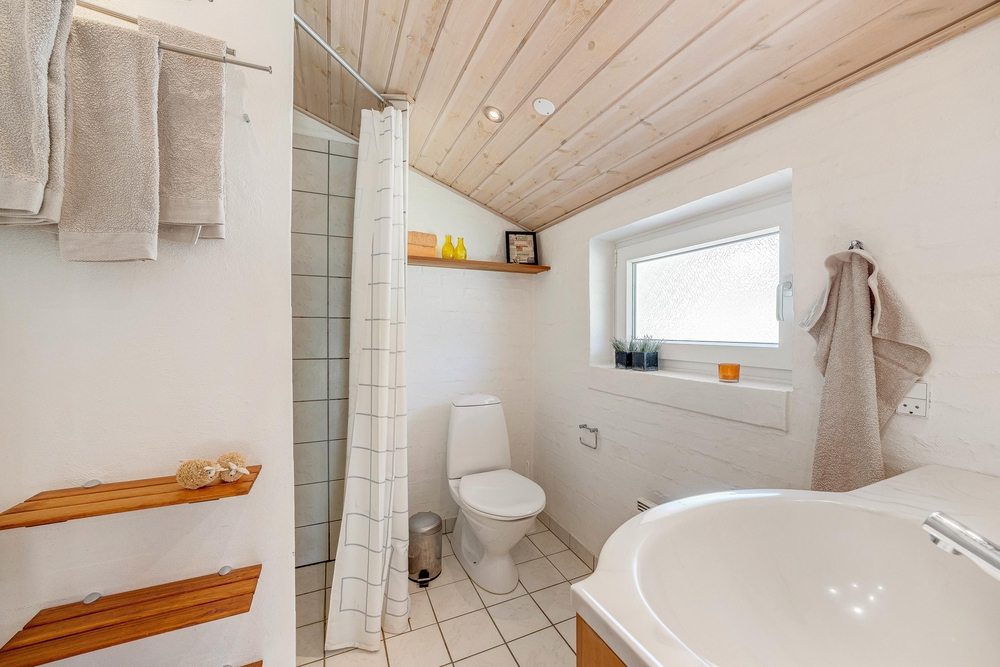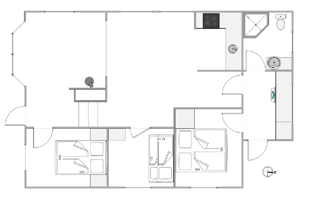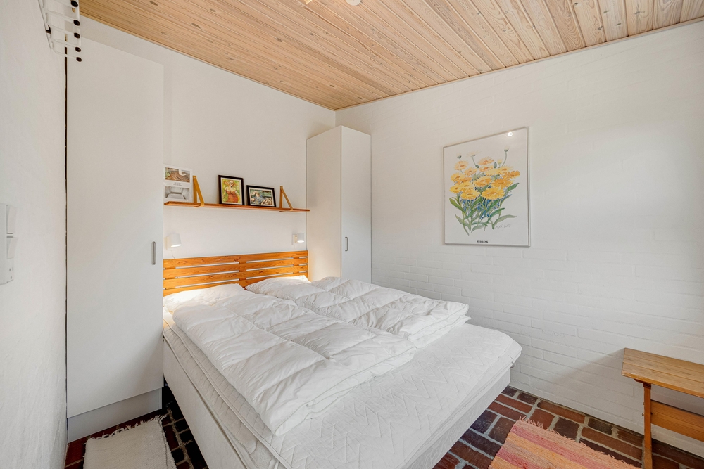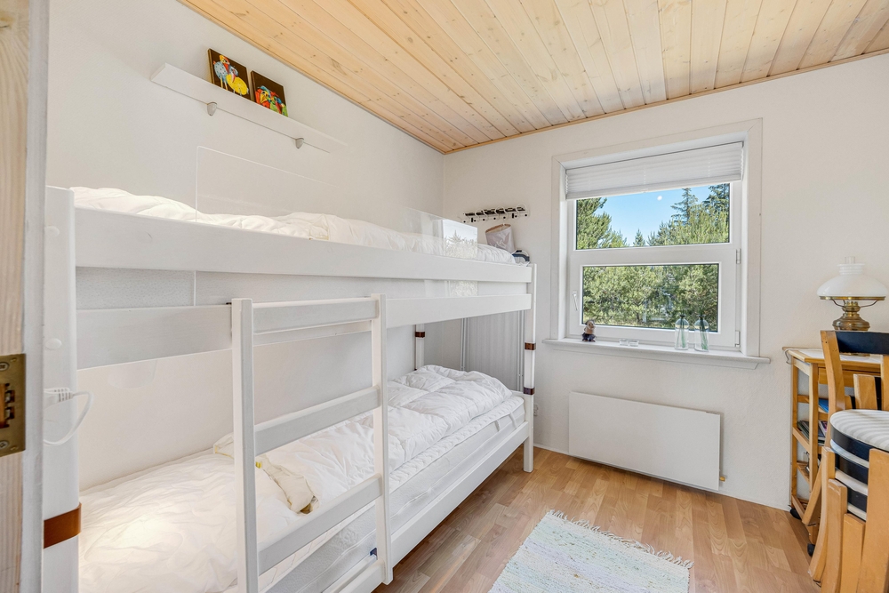 Das Ferienhaus hat insgesamt drei Schlafzimmer. Zwei sind mit jeweils zwei Doppelbetten ausgestattet, und eins mit einem Etagenbett, über das sich die Kinder bestimmt freuen werden. Es gibt ein Badezimmer mit Fußbodenheizung, damit es morgens nach dem Aufstehen keine kalten Füße gibt.