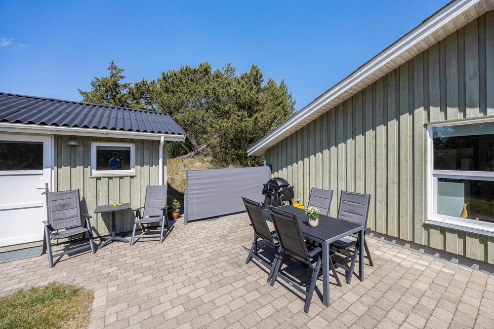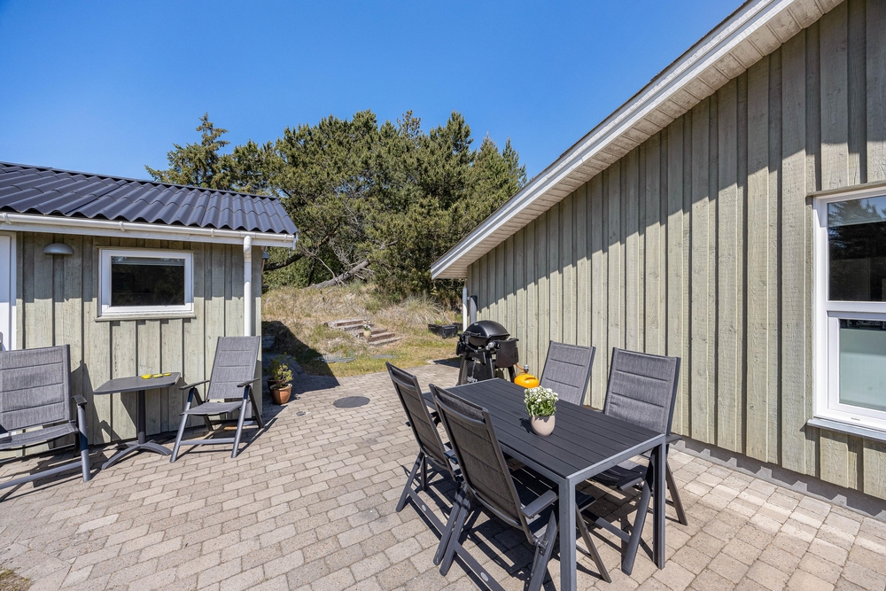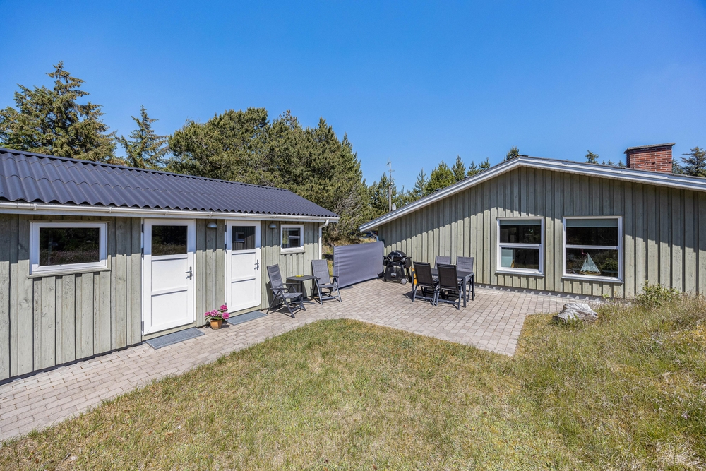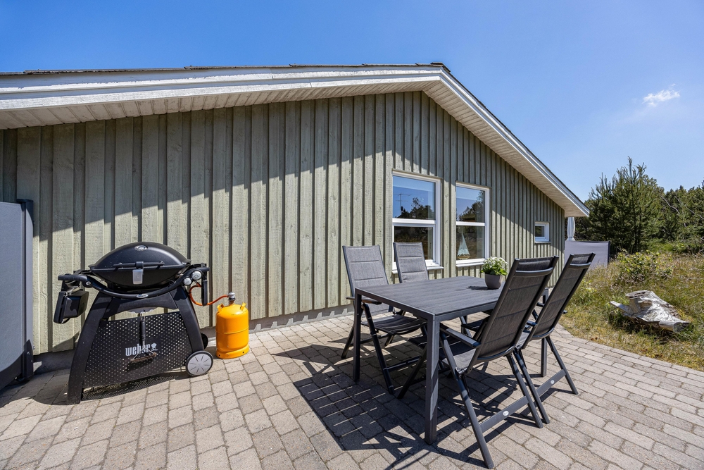 Das Ferienhaus liegt auf einem 2.000 m² großen Naturgrundstück umgeben von Kiefern und Heidekraut. Ausreichend Platz zum Toben, Ballspielen oder einfach nur die Natur zu genießen. Auf der offenen Terrasse könnt Ihr an der frischen Nordseeluft auf den Liegestühlen entspannen, oder zu einem leckeren Grillabend zusammenkommen. Auf dem Gas Grill gelingen Eure Steaks und Würstchen bestimmt besonders gut.