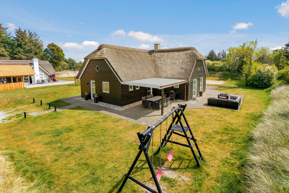 Im Blåvandvej 83 B liegt dieses schöne schwarze Reetdachhaus und lädt Euch zu gemütlichen und lustigen Ferien in Blåvand ein. Die 150 Quadratmeter Wohnfläche bieten reichtlich Platz für 8 Personen. Auch Eure Hunde sind hier herzlich willkommen. Wollt Ihr aktive und gleichzeitig erholsame Ferien verbringen, dann seid Ihr hier genau richtig.