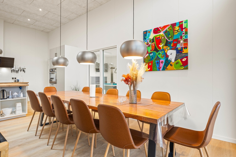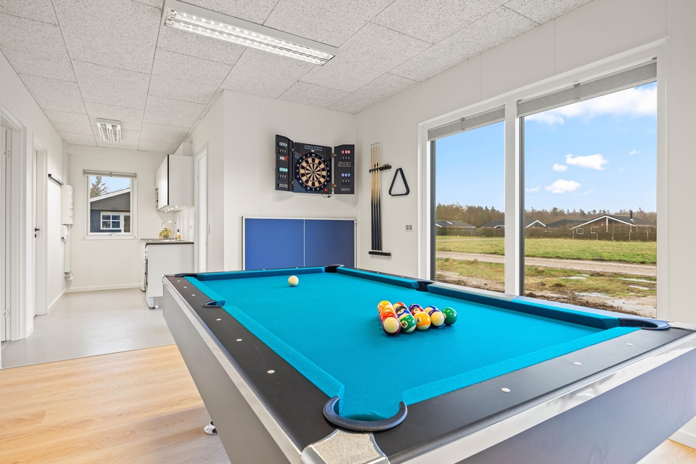 Dieses stilvolle Ferienhaus im Blomstervænget 20 wurde im Jahre 2023 erbaut. 144 gut geplante m2 bieten Platz für 2 Familien mit Kindern jeden Alters, um gemeinsam einen schönen Urlaub zu verbringen. Auch 2 Hunde sind willkommen. Hier könnt ihr Billard spielen oder in den Außenwhirlpool und die Sauna gehen, wann immer ihr wollt.