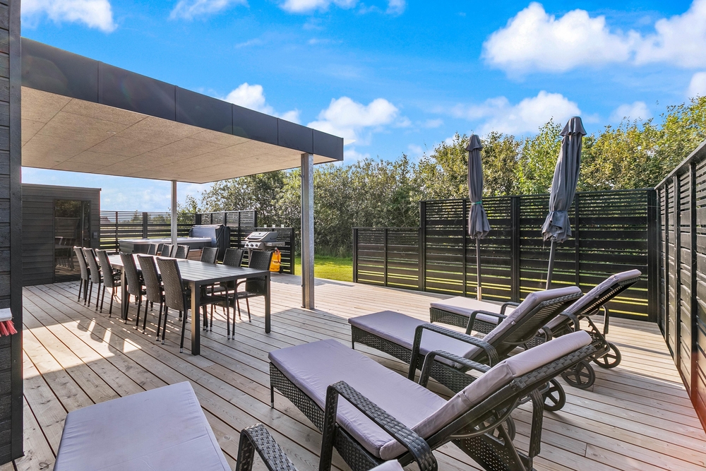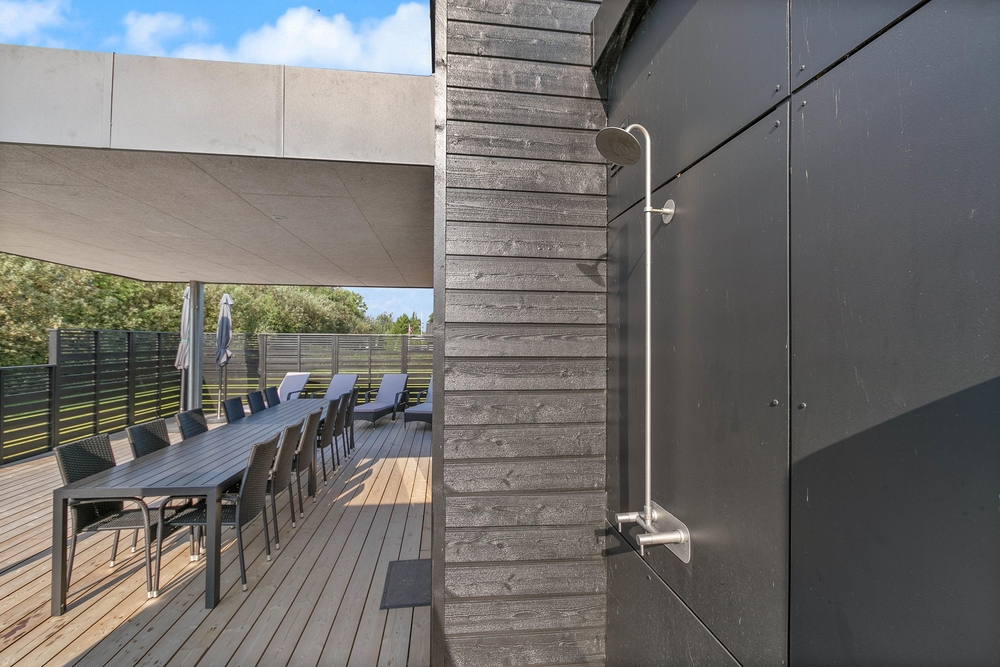Die Terrasse und das eingezäunte Grundstück von Blomstervænget 20 bieten Entspannung und Aktivitäten zugleich. Auf der offenen, teilweise abgeschirmten und überdachten Terrasse könnt ihr es euch in den bequemen Gartenmöbeln und Liegestühlen richtig gemütlich machen. Auch eine Erfrischung unter der Außendusche ist herrlich ? die Außendusche steht von April bis November zur Verfügung.