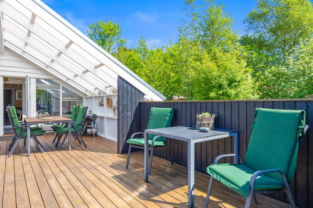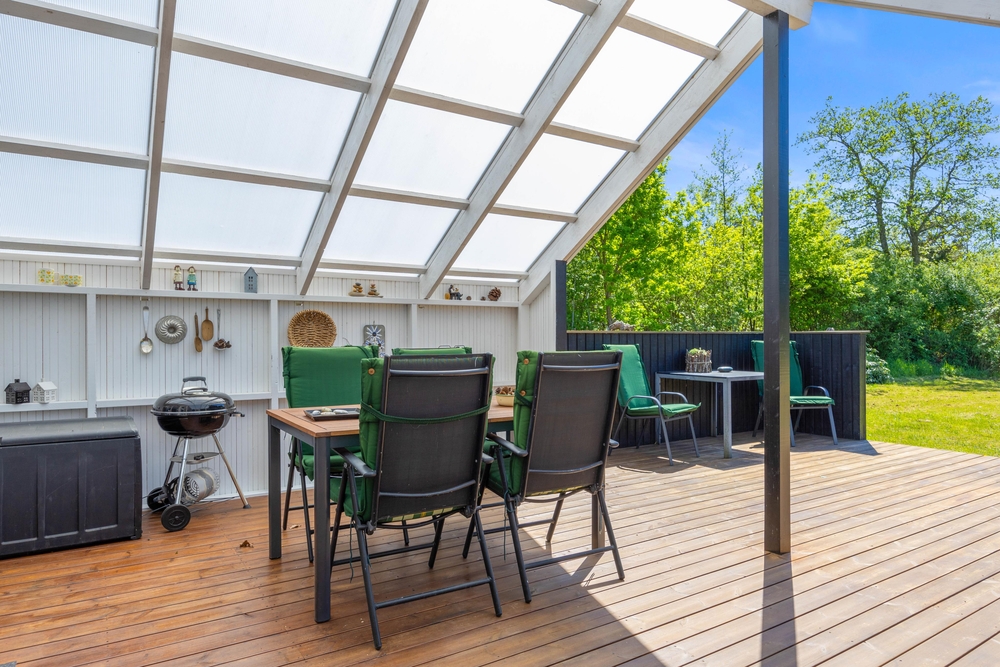 Das Ferienhaus im Blomstervangen 111 verfügt sowohl über eine abgeschirmte als auch eine überdachte Terrasse, die vielseitige Nutzungsmöglichkeiten bietet. Die abgeschirmte Terrasse bietet den perfekten Ort, um in Ruhe ein Buch zu lesen oder einfach die frische Luft zu genießen, während die überdachte Terrasse auch bei weniger sonnigem Wetter einen geschützten Platz im Freien bietet. Hier könnt ihr die Zeit mit Freunden und Familie verbringen, ohne euch von einem Wetterumschwung stören lassen zu müssen.