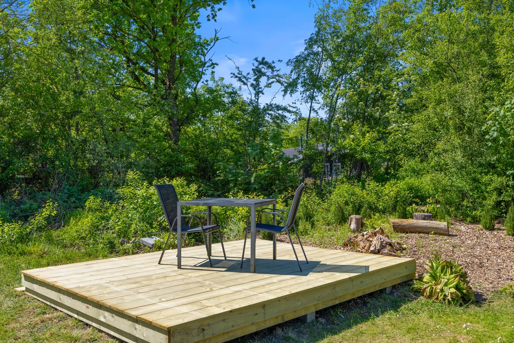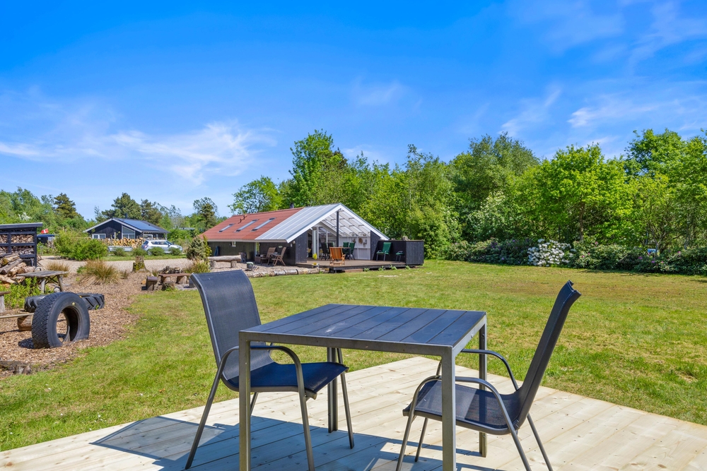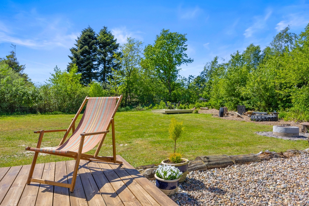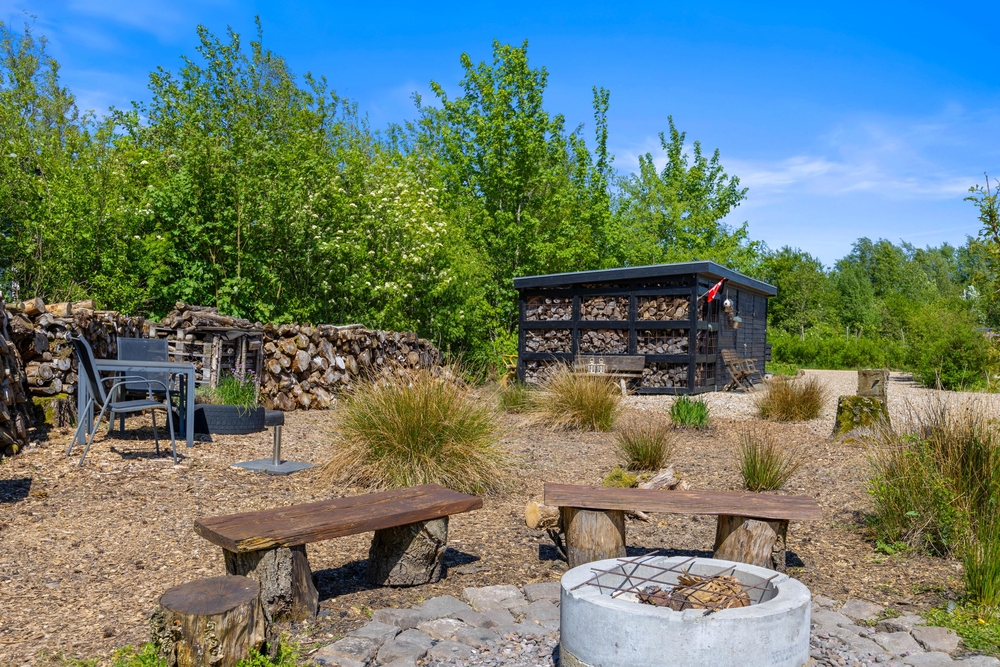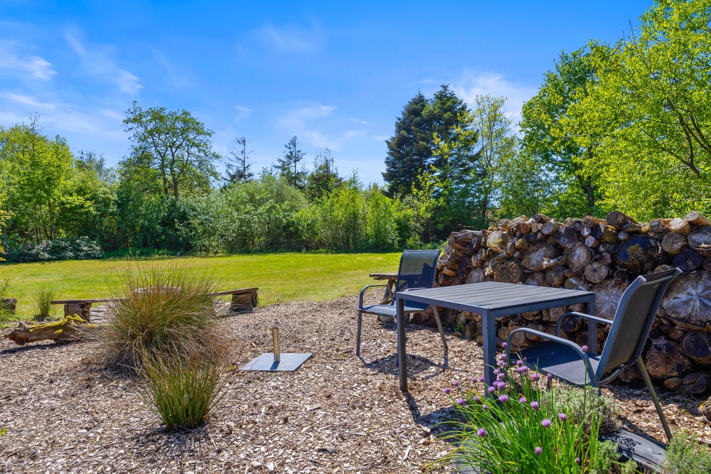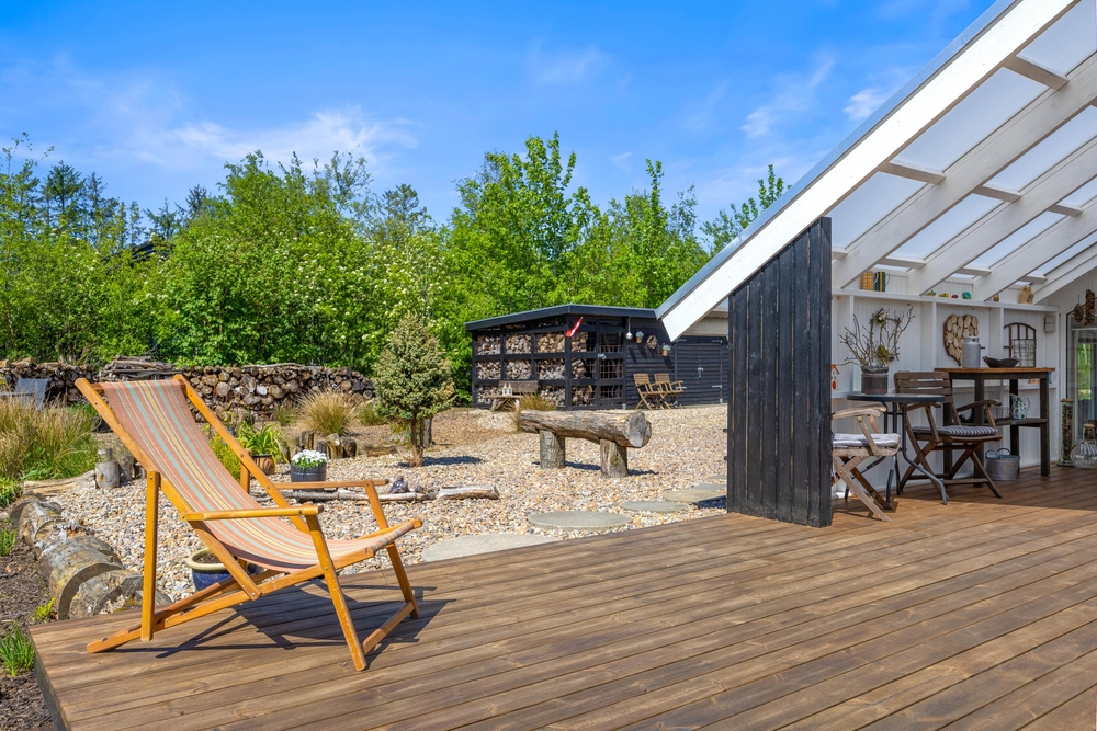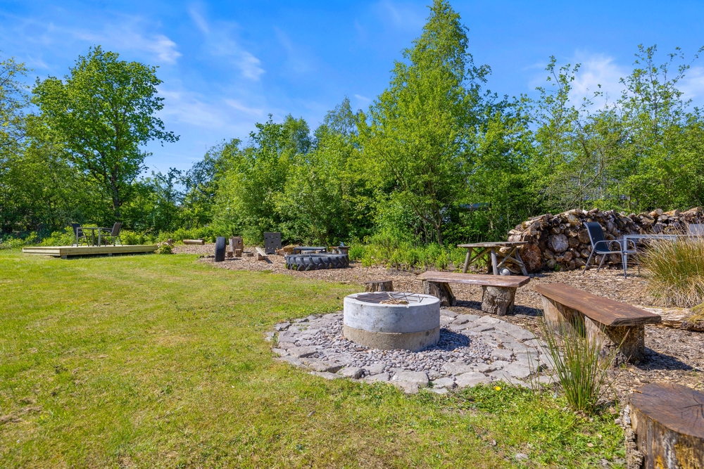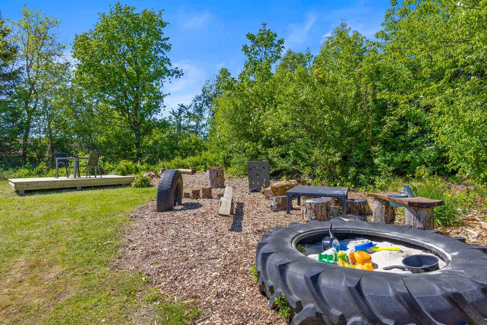 Eingebettet in ein großzügiges Rasengrundstück, lädt der Außenbereich eures Ferienhauses dazu ein, die Natur direkt vor der Tür zu genießen. Die Kinder können hier sicher spielen und ihre Fantasie im Sandkasten ausleben, während die Erwachsenen sich auf der Terrasse entspannen.
