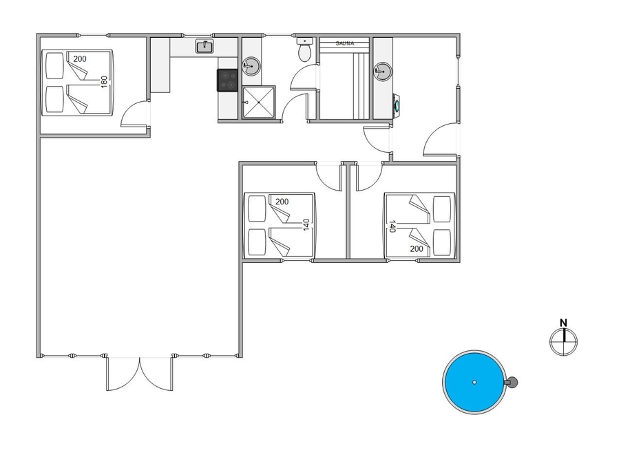 Euer Ferienhaus verfügt über 3 Schlafzimmer, die jeweils mit einem Doppelbett ausgestattet sind und Platz für bis zu 6 Personen bieten. Die Fußbodenheizung im Badezimmer sorgt für angenehme Wärme und erhöht den Komfort, besonders in den kälteren Monaten. Zusätzlich ist das Badezimmer mit einer Waschmaschine ausgestattet, was praktisch ist und vor allem bei längeren Aufenthalten von großem Nutzen sein kann. Die Sauna des Ferienhauses verspricht euch Entspannung nach einem aktiven Tag in der Natur.