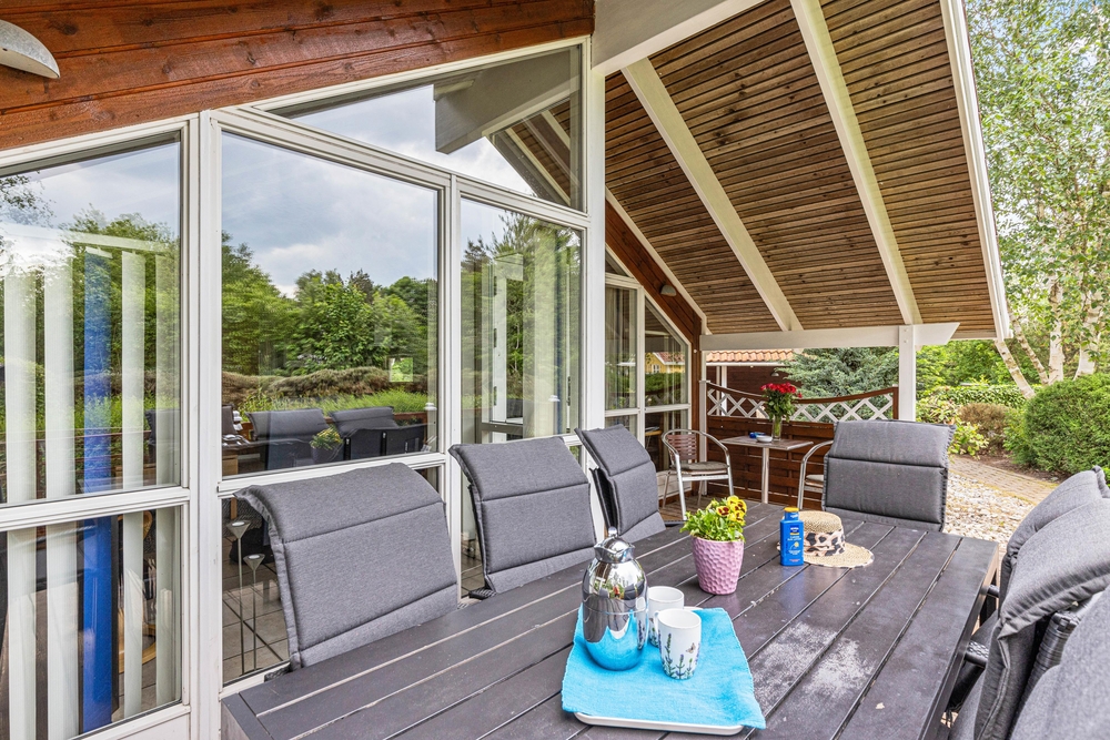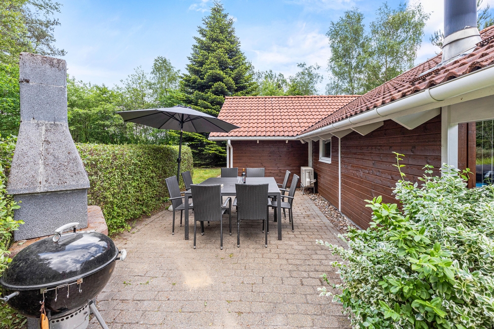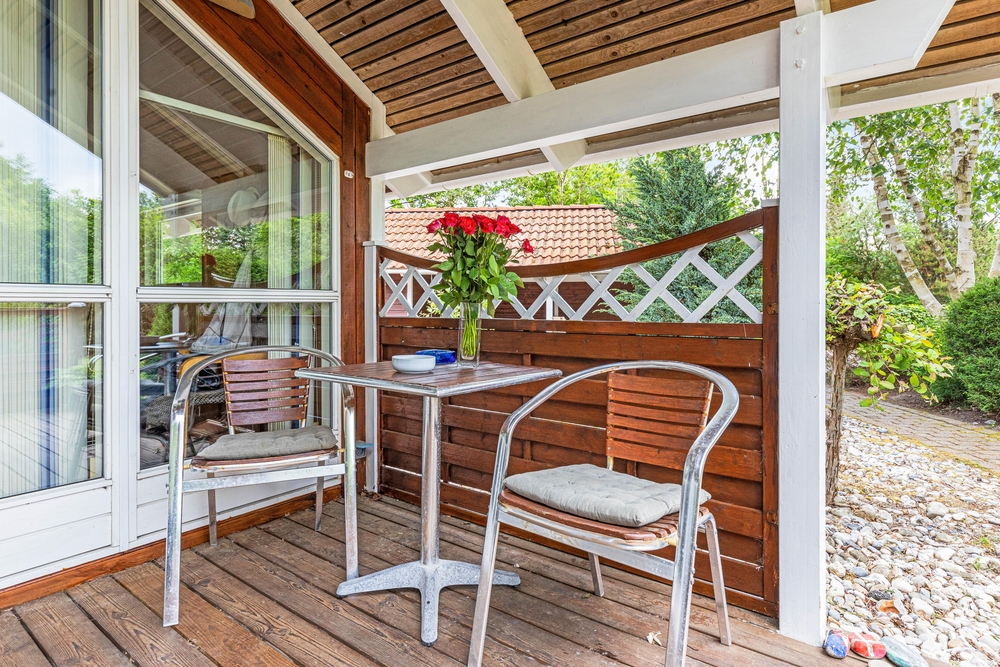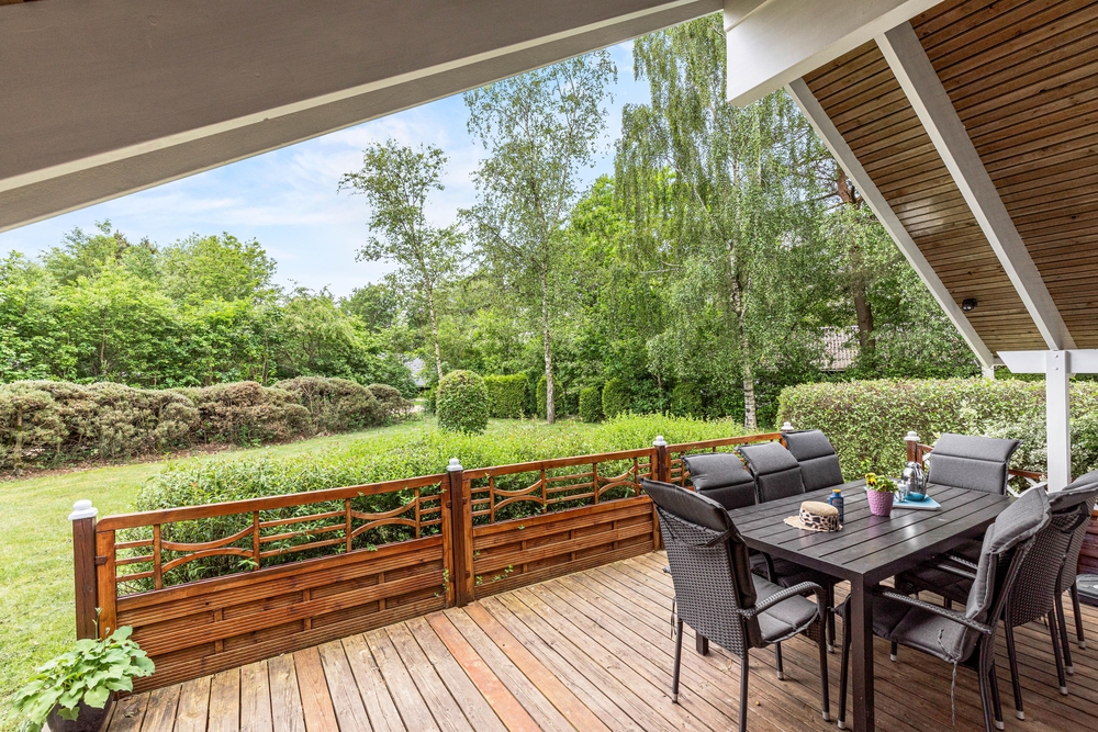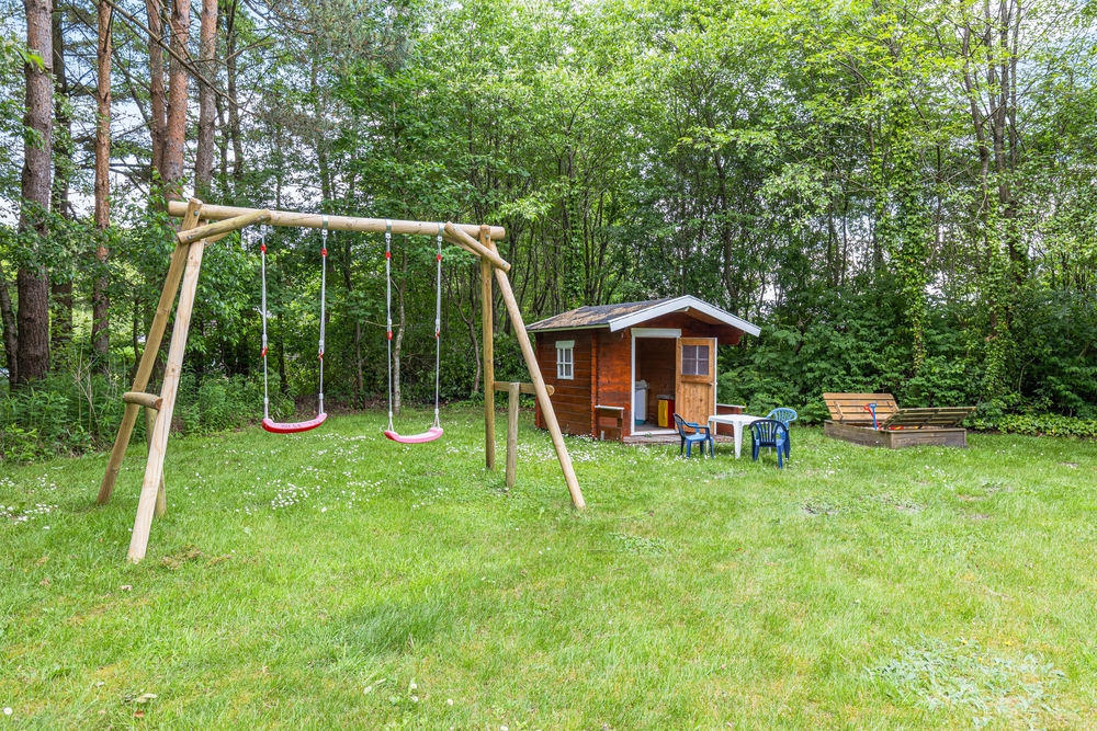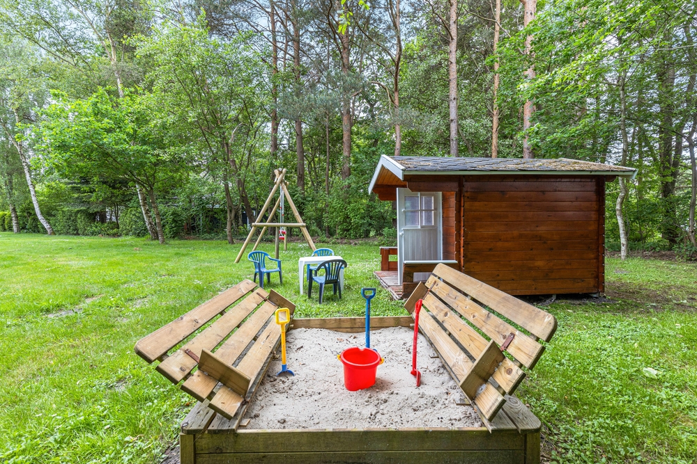 Die Kinder werden von der Schaukel und dem Sandkasten begeistert sein, die endlosen Spielspaß bieten. Auch das Spielhaus wird sicherlich sehr beliebt sein, hier können die Kinder ihrer Fantasie freien Lauf lassen. Die offene Terrasse lädt dazu ein, gemeinsame Mahlzeiten im Freien zu genießen. Ausgestattet mit einem Grill ist sie der ideale Ort für gesellige BBQ-Abende oder ein gemütliches Frühstück in der Morgensonne. Dank der überdachten Terrasse könnt ihr auch bei weniger sonnigem Wetter den Außenbereich voll ausschöpfen und die frische Luft genießen.