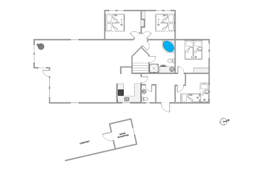 Euch stehen insgesamt 4 Schlafzimmer zur Verfügung, wovon 3 Schlafzimmer mit jeweils einem Doppelbett ausgestattet sind. Das 4.Schlafzimmer verfügt über 2 Einzelbetten. Eine Fußbodenheizung im Badezimmer sorgt für zusätzlichen Komfort. Hier stehen auch eine Sauna und ein Whirlpool bereit, um euch nach einem langen Tag an der frischen Luft zu verwöhnen.