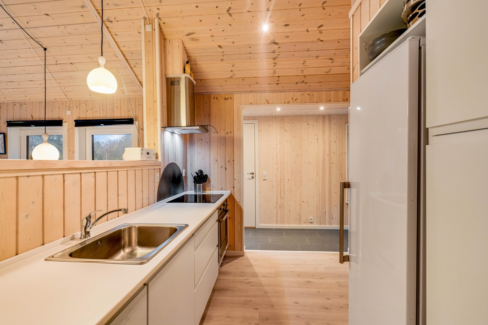 Der offene Wohnbereich des Ferienhauses ist der ideale Ort, um gemeinsame Zeit zu verbringen und das Zusammensein zu genießen. Die Küche bietet alles, was ihr für die Zubereitung leckerer Mahlzeiten benötigt. Die Spülmaschine nimmt euch anschließend den größten Teil des Abwasches ab.