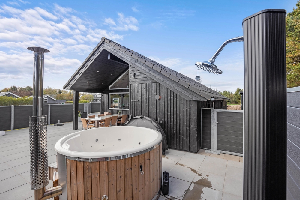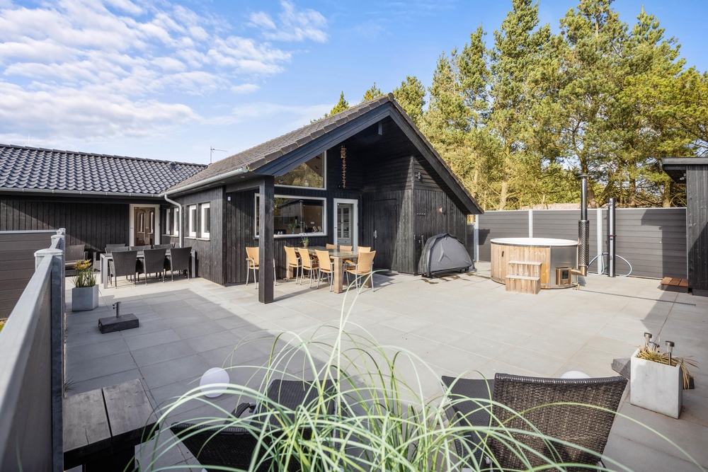 Das Naturgrundstück des Ferienhauses im Blomstervangen 70 bietet genügend Platz für die Kinder zum Spielen und für Erwachsene zum Entspannen. Die Boccia-Bahn steht für das eine oder anderes Spiel bereit. Auf der abgeschirmten Terrasse, welche euch jederzeit ungestörte Momente im Freien ermöglicht, könnt ihr euren Morgenkaffee genießen oder abends bei einem Grillabend den Tag gemütlich ausklingen lassen. Sollte das Wetter einmal etwas unbeständiger sein, könnt ihr es euch auf der überdachten Terrasse gemütlich machen.