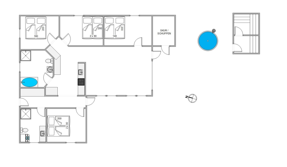 Mit insgesamt 4 Schlafzimmern findet hier jeder seinen Platz für eine erholsame Nachtruhe. Alle Schlafzimmer verfügen über ein Doppelbett. Die beiden Badezimmer sind mit einer Fußbodenheizung ausgestattet, welche die Räume angenehm warmhalten.