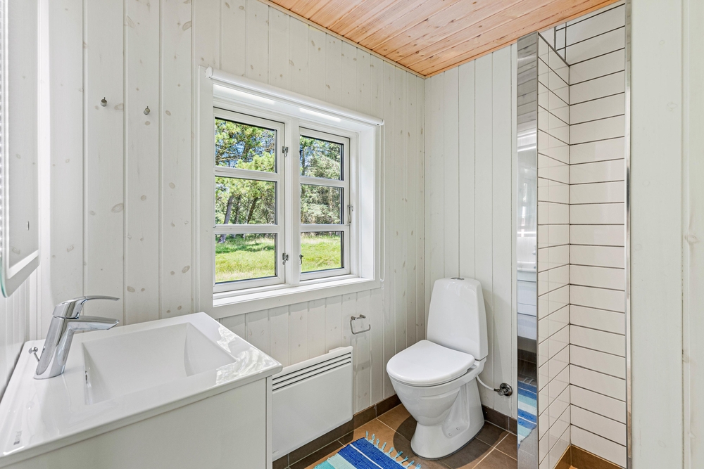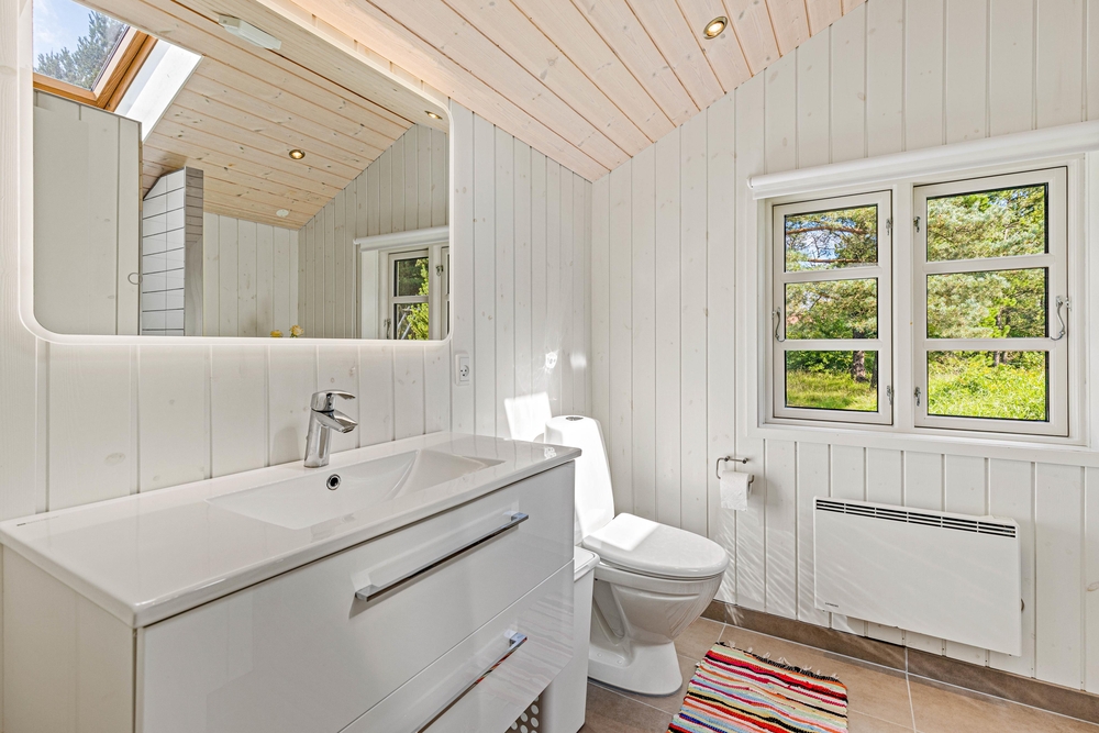Das Haus hat drei großzügige, luftige Schlafzimmer, die alle mit bequemen Doppelbetten ausgestattet sind. Das schöne ist, dass die Schlafzimmer alle durch einen vorgelagerten Flur vom Wohnbereich getrennt sind. Hier könnt ihr euch also wirklich in Ruhe zurückziehen, um gut zu Schlafen und eure Akkus wieder aufzuladen. Es gibt zwei moderne Badezimmer, jeweils mit einer Duschnische und einer Fußbodenheizung.