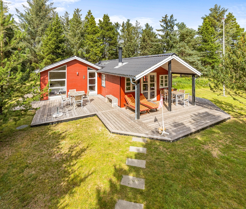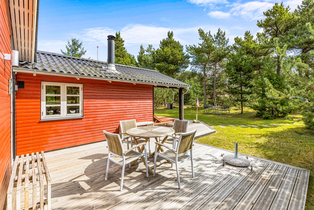 Ein Holzhaus im Wald, drinnen knistert ein wärmendes Feuer im Kaminofen, es duftet nach frisch gebrühtem Kaffee und Zimtschnecken ? klingt das nicht ?hyggelig?? Im Brdr Lauridsensvej 12 im charmanten Ferienort Ho, könnte euer Urlaub in Dänemark so aussehen. Umgeben von einem Kiefernwäldchen, kann man hier die Natur und Ruhe ganz ungestört genießen, und dem stressigen Alltag entfliehen.