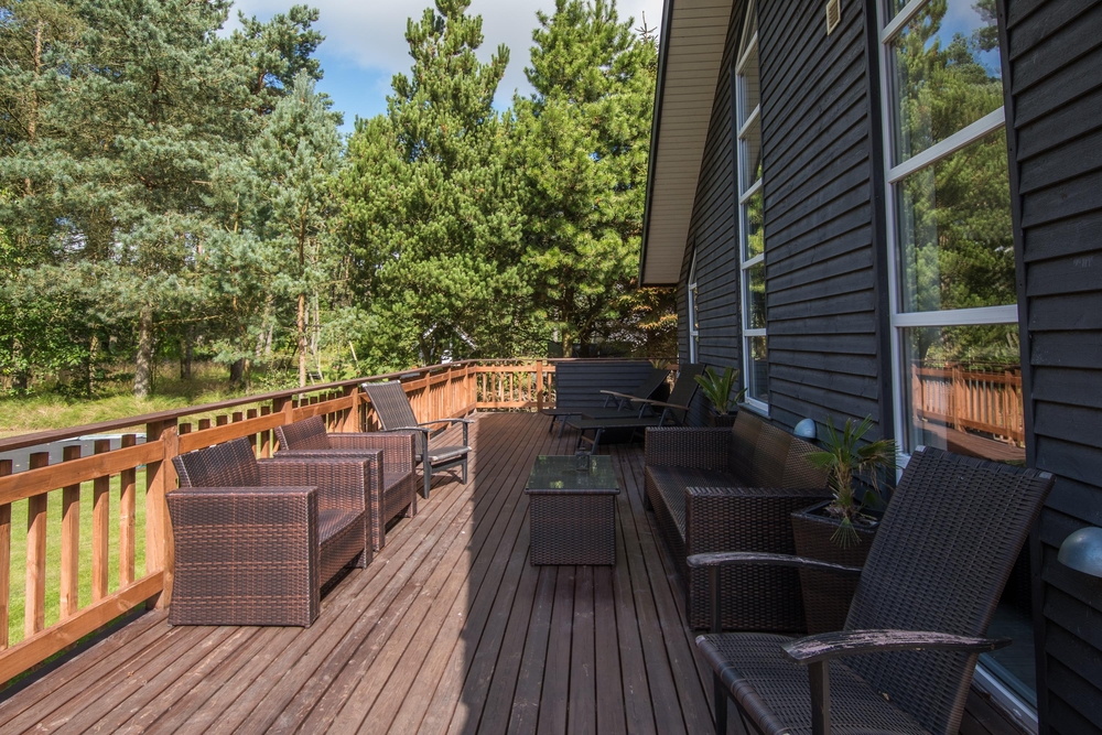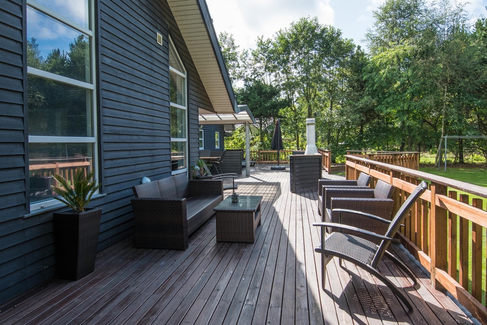 Das Ferienhausaus verfügt über gleich zwei tolle Terrassen, wo ihr immer ein schönes Plätzchen zum faulenzen findet. Die Kinder und der Hund können sich in der Zeit auf dem Rasen austoben. Auf dem Grundstück gibt es Fußballtore und ein Trampolin, welches von April bis Oktober genutzt werden kann.
