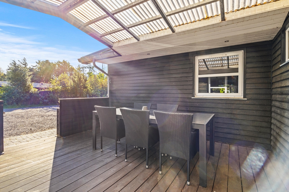 Gartenmöbel stehen für euch auf der Terrasse bereit, wo ihr die Sonnenstrahlen genießen könnt. Sollte das Wetter mal nicht mitspielen, dann könnt ihr trotzdem unter der überdachten Terrasse gemütlich grillen.