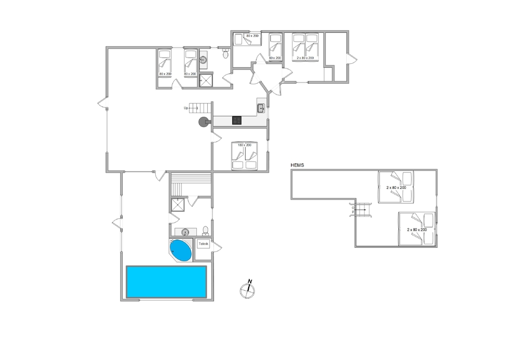 Dieses Ferienhaus mit Swimmingpool, gebaut 1992, wurde 2013 durchgreifend renoviert. Es wurde eine neue Küche und neue Badezimmer eingebaut und ein praktischer Holzlaminatboden in Küche, Wohnzimmer und Schlafzimmern verlegt. Zwei der Schlafzimmer sind mit Doppelbetten ausgestattet, die anderen 2 Zimmer bieten je zwei Einzelbetten. Der geräumige Hängeboden (Hems) hat 4 Schlafplätze und einen Flachbildschirm mit extra Receiver, Playstation 3 und Nintendo Wii ? ideal für die Kinder. Darüber hinaus stehen zwei Kinderbetten und zwei Kinderhochstühle im Ferienhaus.