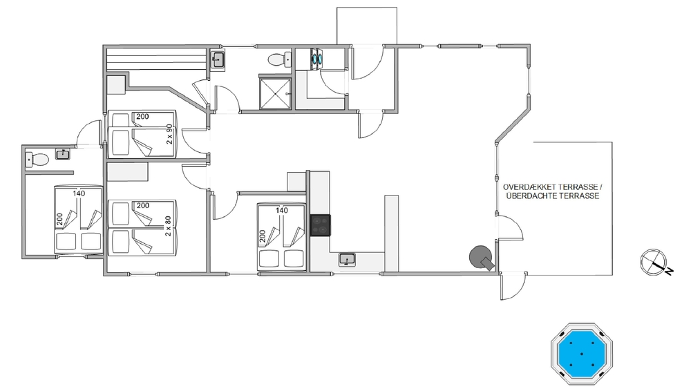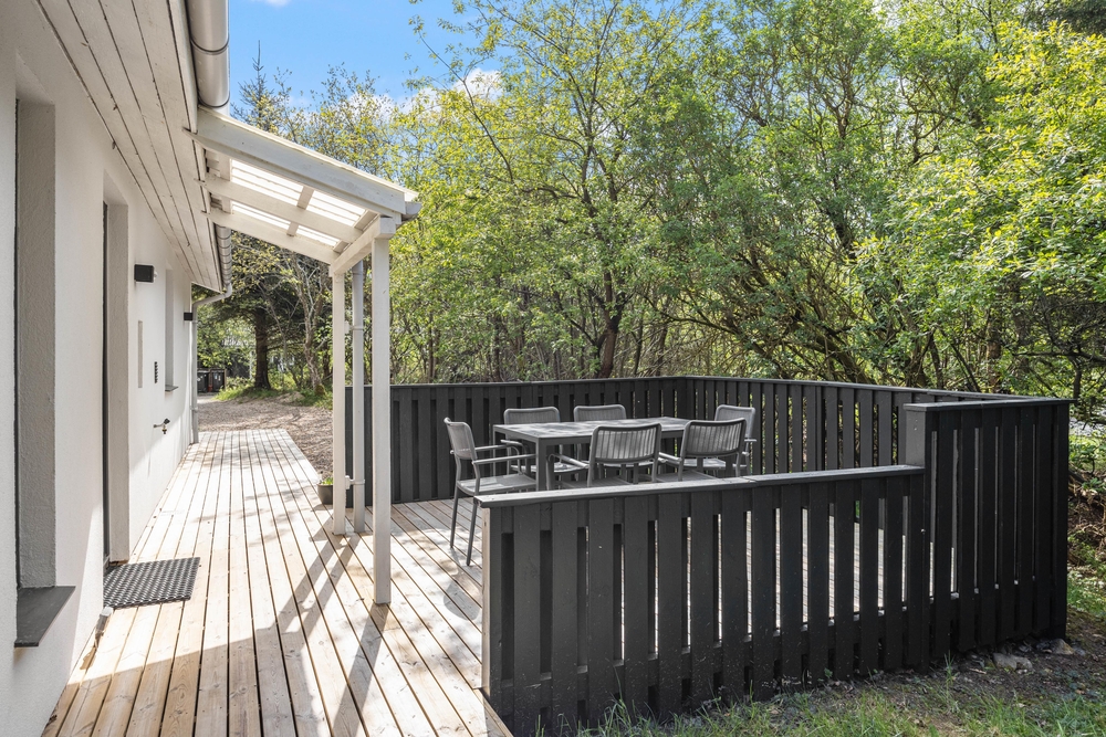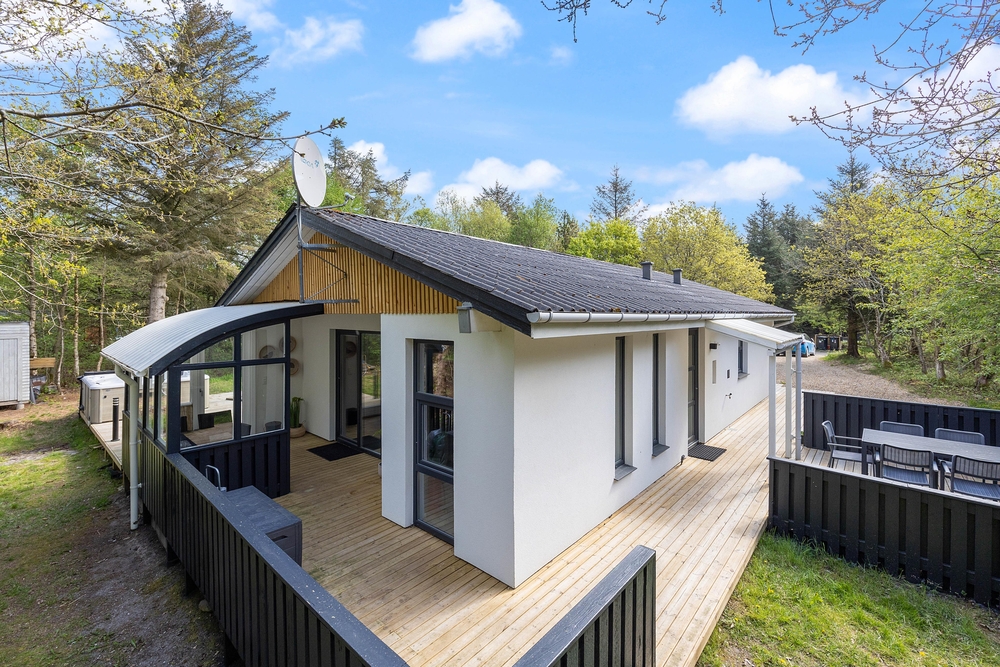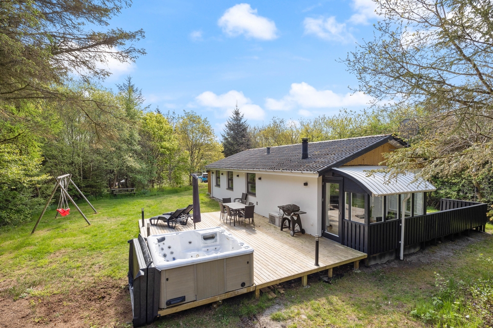Das 2260 m2 große Grundstück bietet viel Platz zum Spielen und Toben für die Kleinen und euren Hund. Auf der Schaukel können die Kinder viel Spaß haben, während ihr euch auf der Terrasse beim Sonnenbad entspannt. Genießt köstliche Grillabende inmitten der Natur von Lodbjerg Hede oder schaut den Sternen beim Funkeln zu, während ihr euch im Außenwhirlpool einzigartig entspannt. Auch wenn das Wetter mal nicht vollkommen mitspielt, steht den langen Abenden auf der Terrasse durch die Überdachung und dem guten Windschutz nichts im Wege.