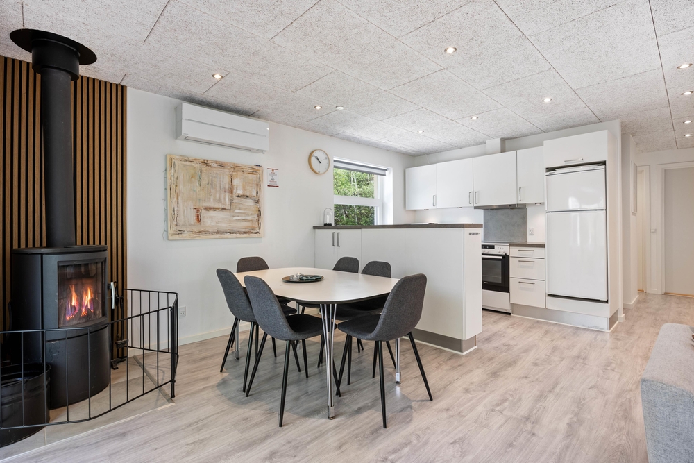 Durch die bodentiefen Fenster begrüßt euch dieses Ferienhaus lichtdurchflutet und mit einem hellen und offenen Wohnklima. Die 85 m2 verteilen sich auf die offene Küche, 4 Schlafzimmer, 2 Bäder mit Sauna, einen Hauswirtschaftsraum und den offenen Wohn- und Essbereich. Der Kamin im Wohnbereich strahlt jede Menge Gemütlichkeit aus und lässt das Glas Wein noch besser schmecken. Tauscht euch bei intensiven Gesprächen in einer gemütlichen Atmosphäre aus oder habt jede Menge Spaß bei gemeinsamen Spieleabenden, in diesem Ferienhaus wird all dies zu einem einzigartigen Erlebnis.
