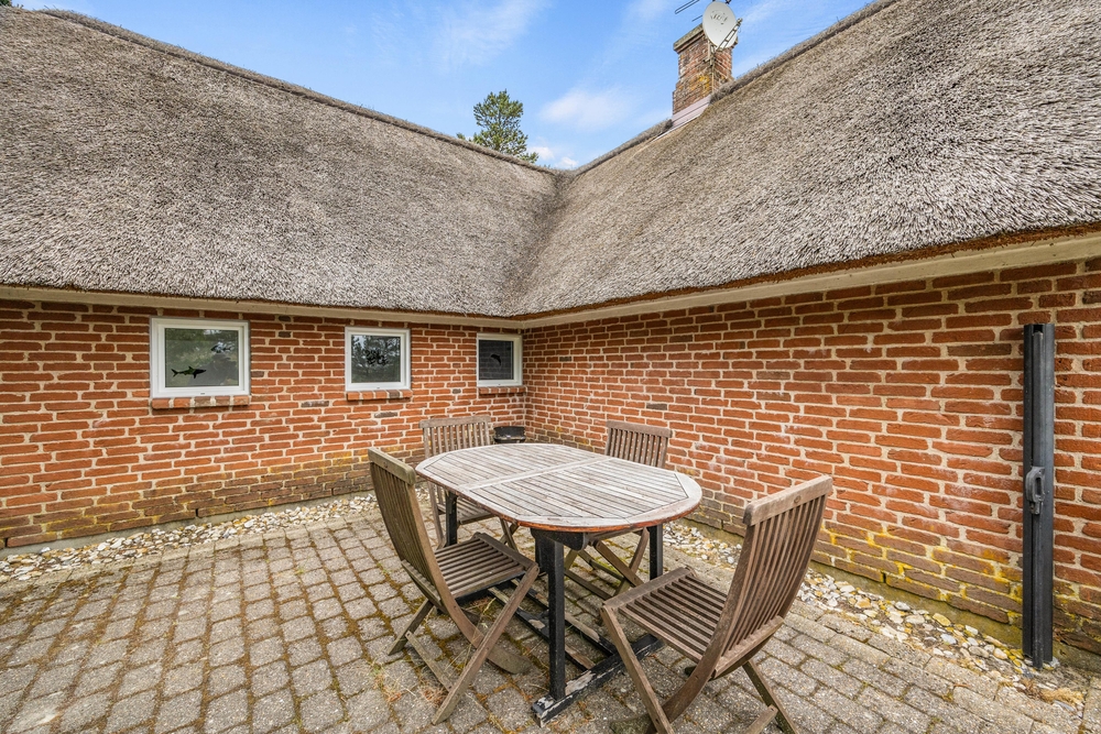 In Mosevrå, nahe der idyllischen Ho Bucht, findet ihr dieses schöne Reetdachhaus, das ideal für einen Urlaub mit mehreren Familien geeignet ist. Hier ist auf 180 qm Platz für bis zu 8 Personen und eure beiden Vierbeiner dürfen euch ebenfalls begleiten. Das Poolhaus am Bugten 7 lädt euch im Innenbereich zu Spaß im Pool, entspannten Momenten in Sauna und Whirlpool, und Geselligkeit im Wohnbereich ein. Draußen könnt ihr die warmen Sommertage genießen und abwechslungsreiche Spielgeräte ausprobieren.