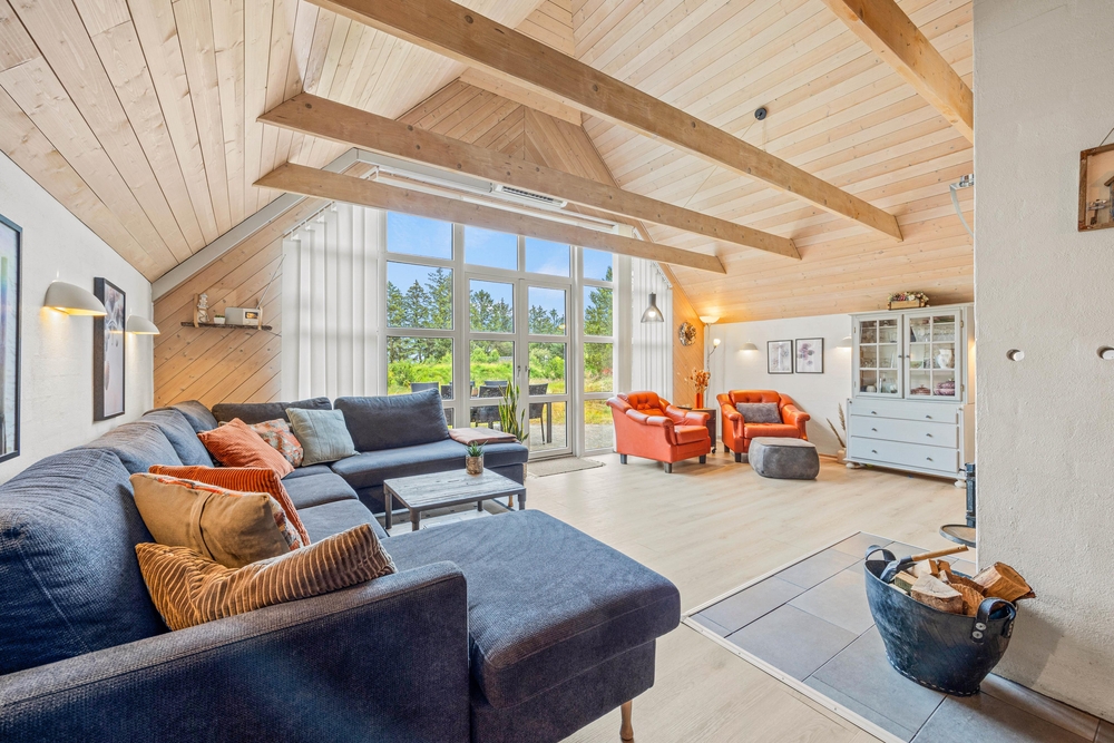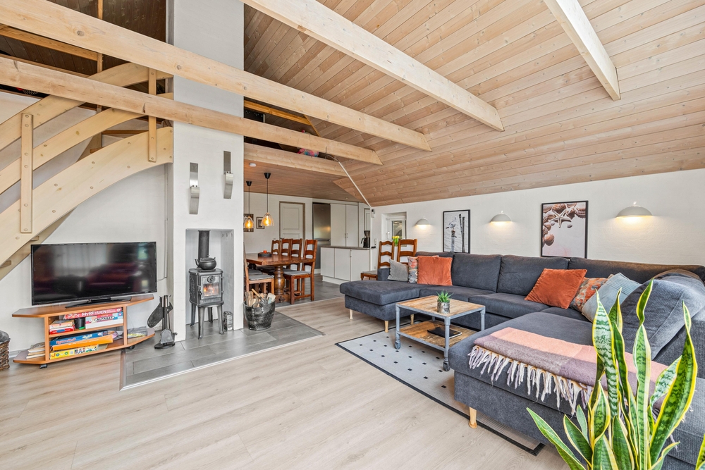 Der schöne, helle Wohnraum, mit seiner großen Fensterfront, lädt zu vielen gemütlichen Urlaubsmomenten mit Kochen, Spielen und Filmabenden ein. Der Kaminofen sorgt hierbei für eine gemütliche Urlaubsatmosphäre. Außerdem gibt es einen Tischfußball, an dem ihr euch austoben könnt.