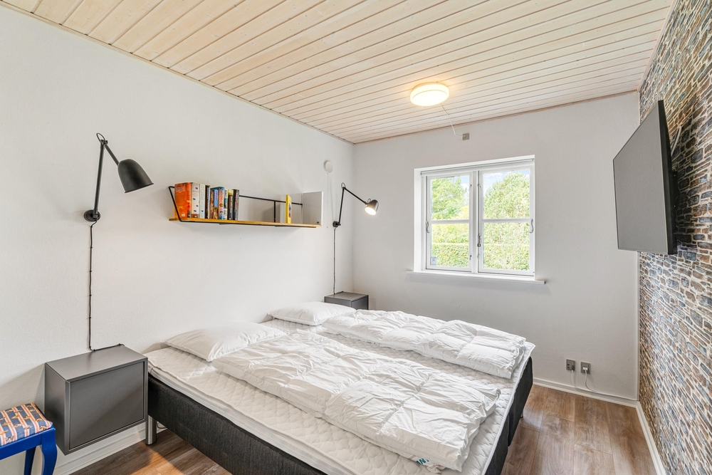 Das Ferienhaus am Bytoften 1 lädt zu geselligem Zusammensein ein, aber auch Rückzug ist möglich ? und sollte man sich nicht auf ein gemeinsames Fernsehprogramm einigen können, so ist dies hier kein Problem, denn hier gibt es insgesamt fünf Fernseher und auch einen Chromecast. Der knisternde Kaminofen unterstreicht die gemütliche Stimmung im Wohnzimmer.