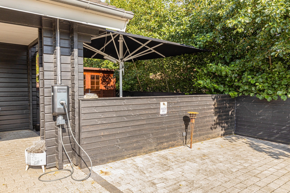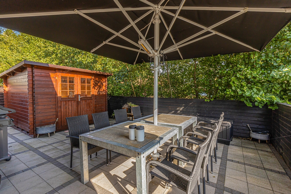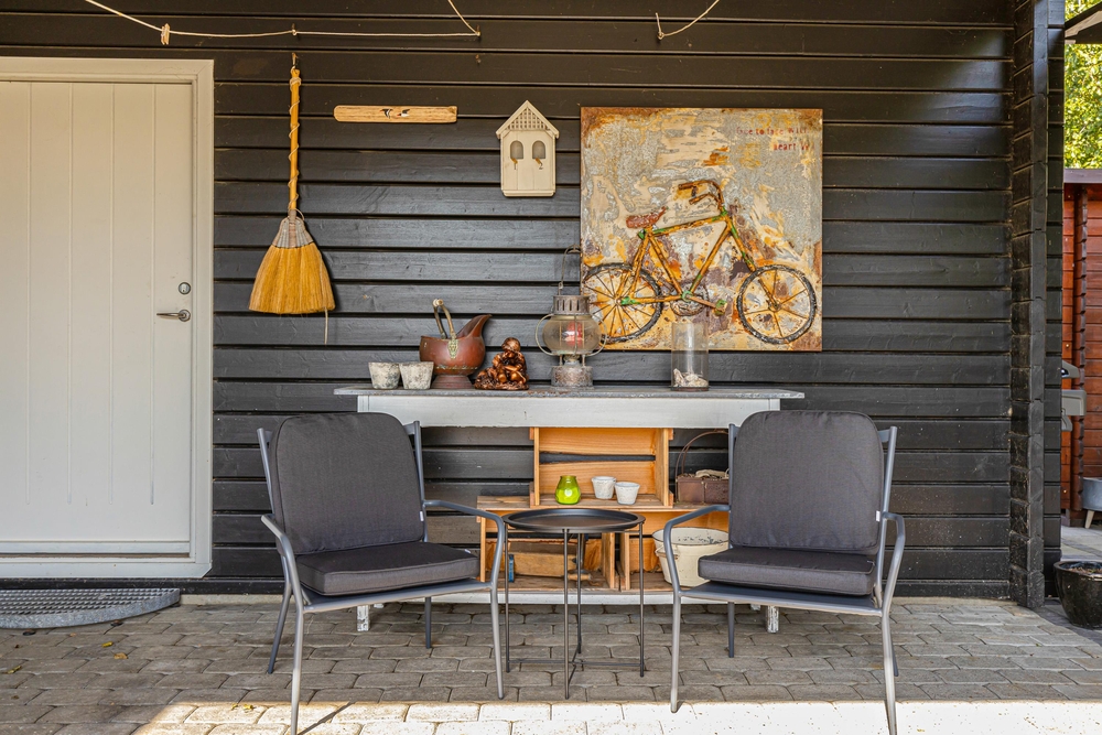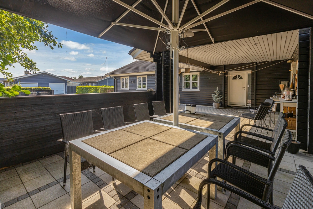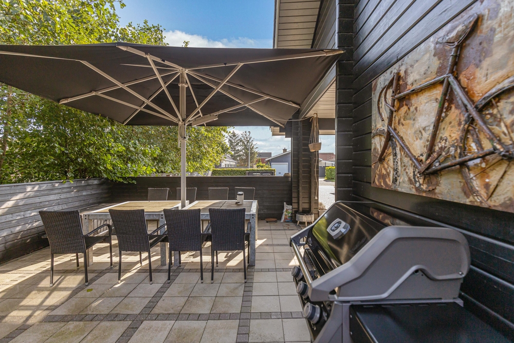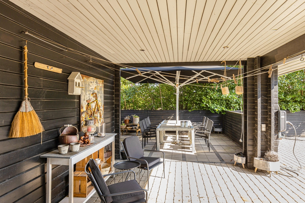 Auch im Außenbereich setzt auf gesellige Runden zum Beispiel einem netten Grillabend, je nach Wetterlage wählt ihr die offene oder die überdachte Terrasse auf der anderen Hausseite.