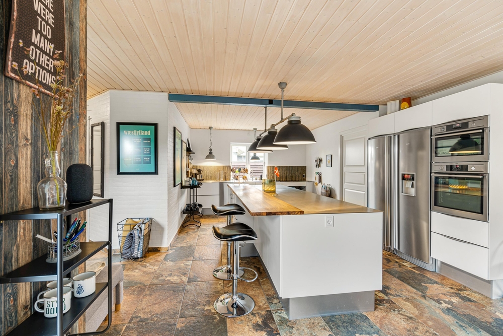 Wenn ihr den großzügig geschnittenen Wohn- und Essbereich betretet wird dem Hobbykoch unter euch direkt das Herz höher schlagen, denn die hochwertig eingerichtete Küche mit dem großen Küchenblock in der Mitte, Quooker und Weinkühlschrank, macht große Lust direkt loszulegen und mit dänischen Leckereien zu experimentieren. Wenn ihr etwas vergessen habt, sind es ja nur 500 Meter in den Ortskern von Blåvand.