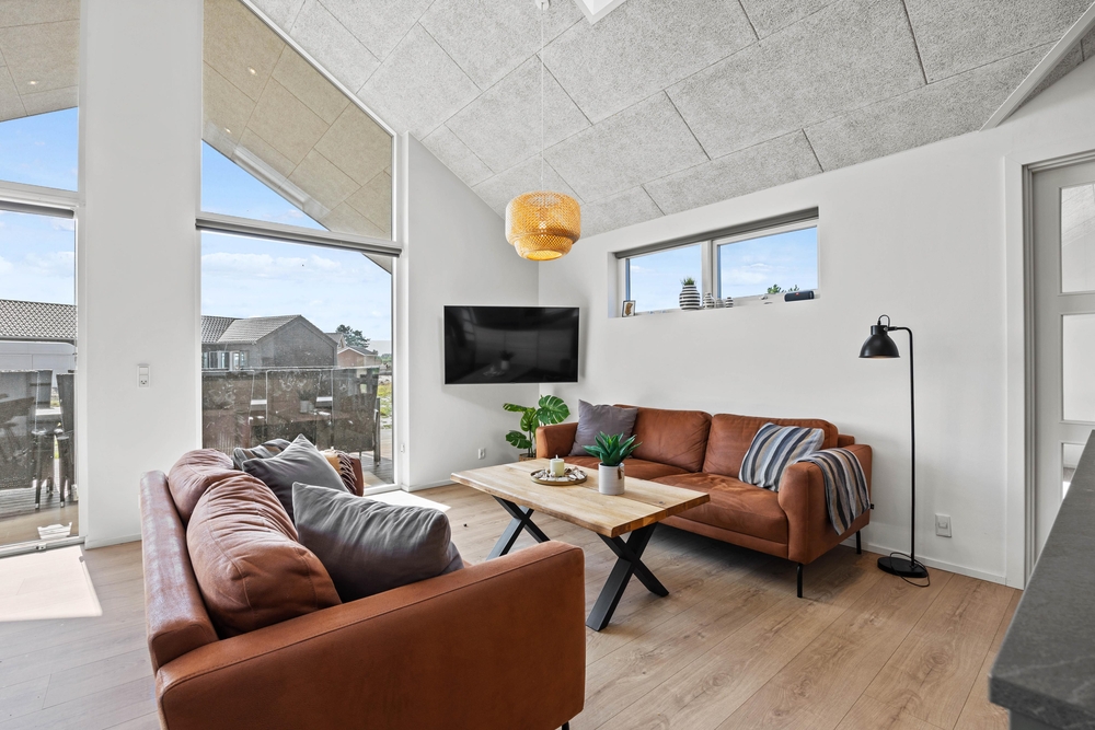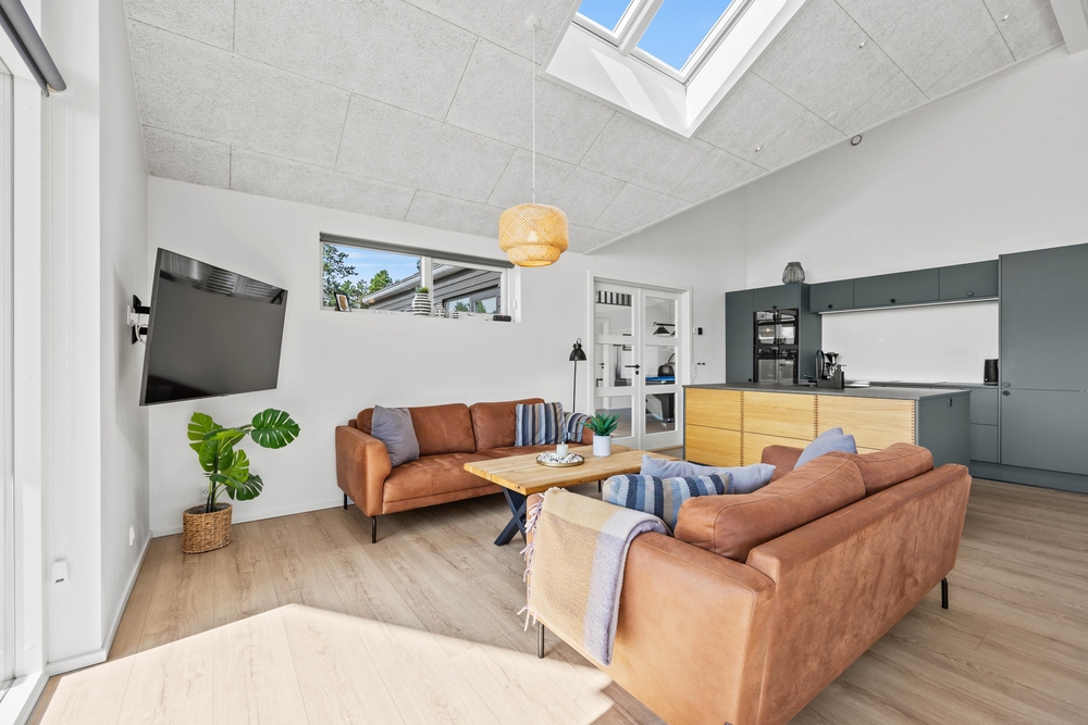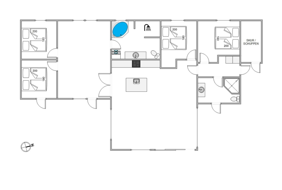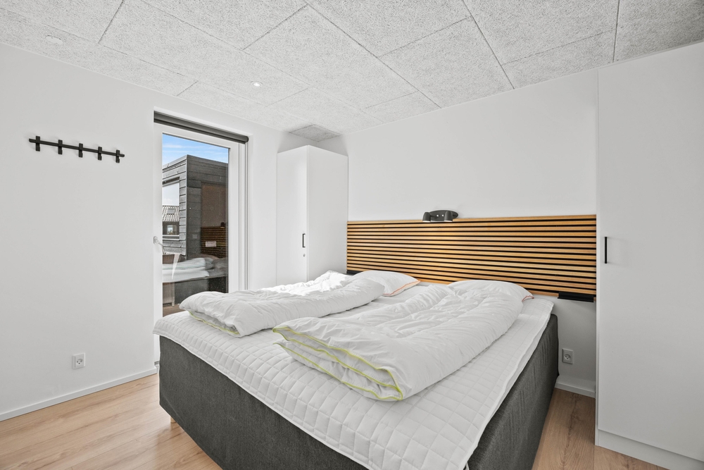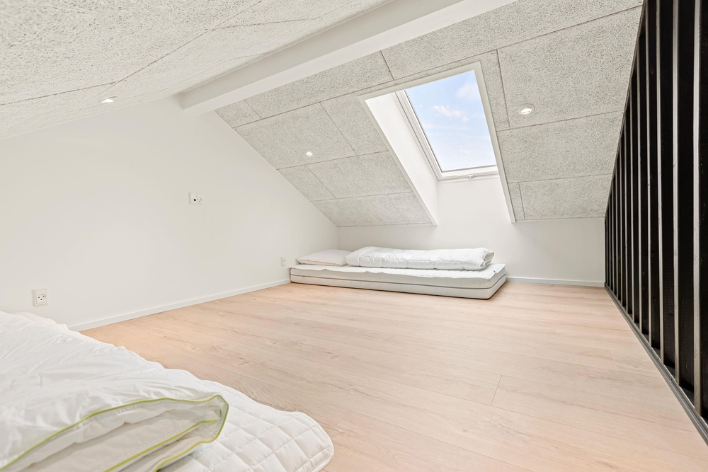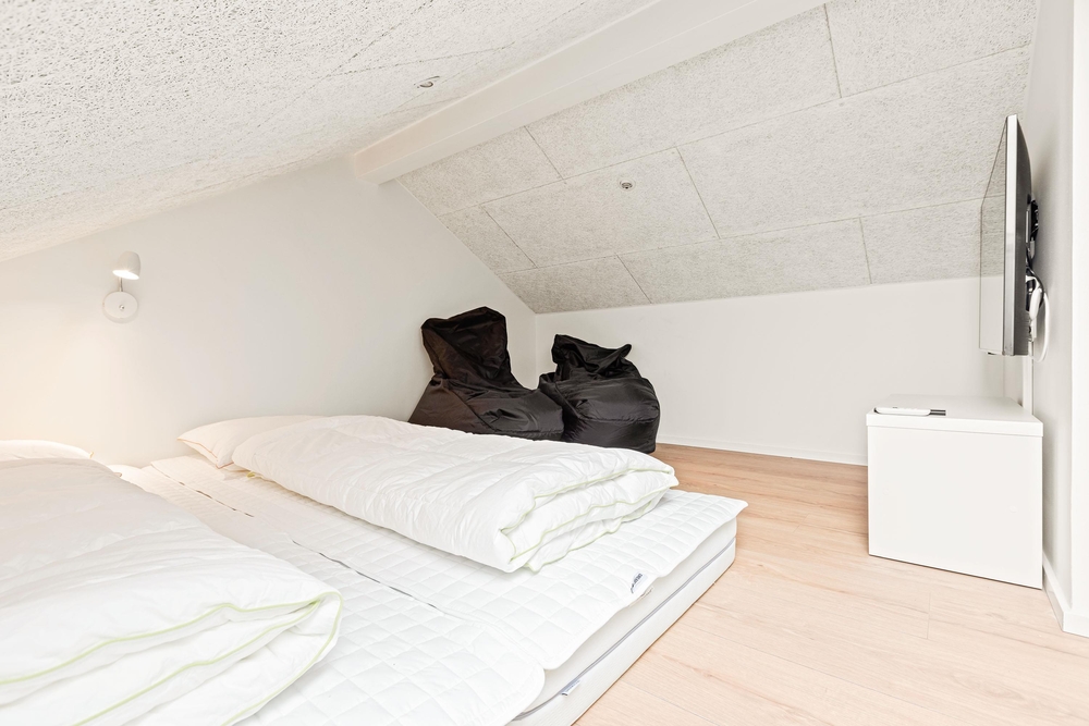 Im Ferienhaus gibt es 4 Schlafzimmer mit hochwertigen Doppelbetten ? drei in der Größe 180 x 200 cm und eins in der Größe 160 x 200 cm. Die restlichen 4 Schlafplätze verteilen sich auf 2 offene Schlafböden (Hems) mit je 2 Matratzen. Der eine wird ein Paradies für Kinder sein, hier können sie sich bei Spielen am Bildschirm amüsieren, während die Erwachsenen unten im Wohnraum gesellig beieinander sind. Der andere Hems ist vom Aktivitätsraum zu erreichen.