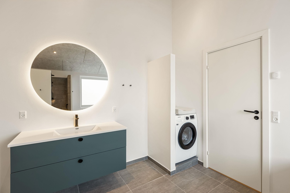 Es gibt 2 komplette und schick eingerichtete Badezimmer, wovon das eine mit 2-Personen-Whirlpool, Waschmaschine und Trockner eingerichtet ist.