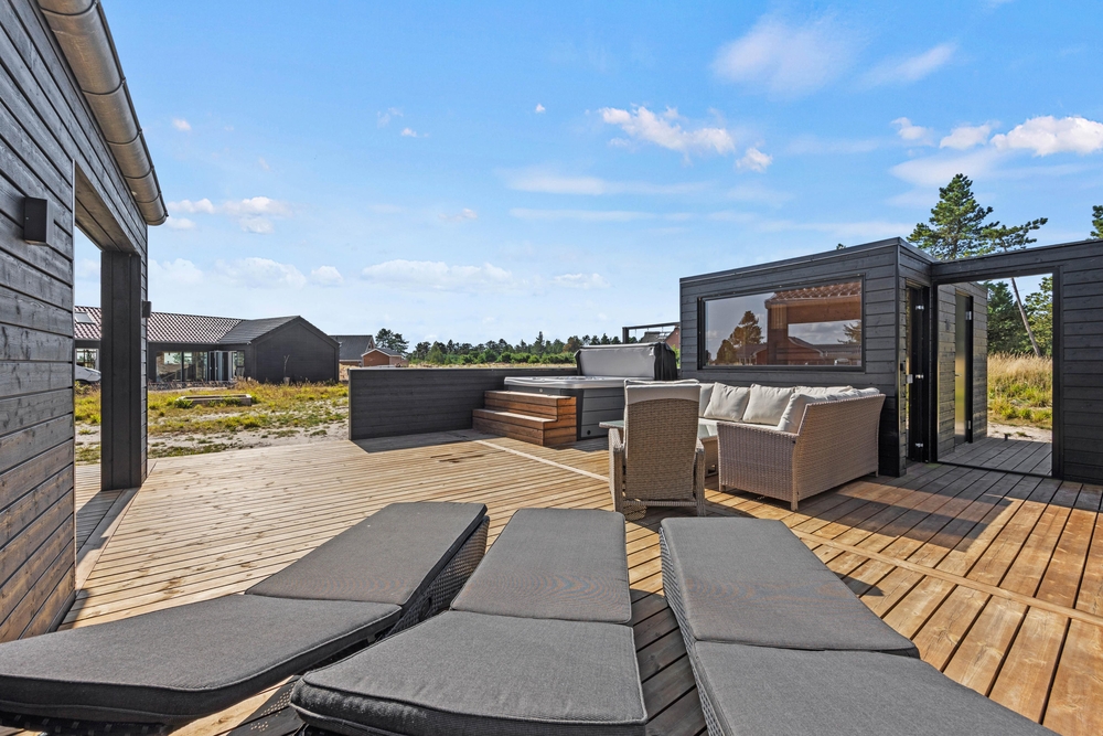 Dieses wirklich schöne und geschmackvoll eingerichtete Aktivitätshaus für 12 Personen liegt am schönen Wattenmeer in Kromose auf Rømø. Das Haus wurde 2023 gebaut und bietet drinnen und draußen eine Menge Komfort und Spaß für größere Familien oder Freundespaare. Erwähnt seien nur ein Whirlpool, ein Jacuzzi auf der Terrasse, eine Saunahütte und eine tolle Terrasse mit Blick zum Wattenmeer.