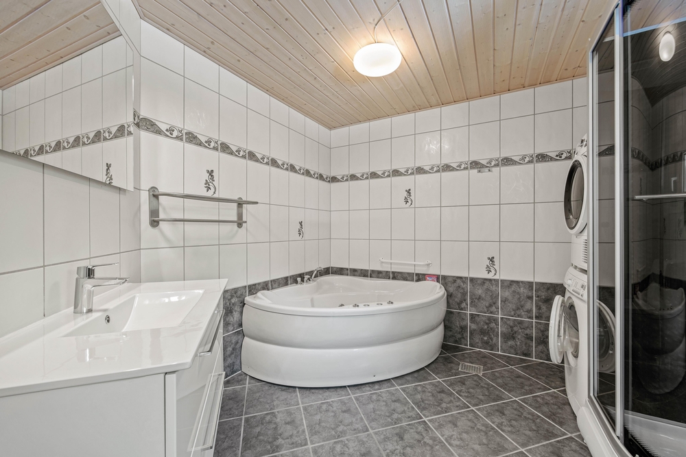 Die 2 Badezimmer sind mit Fußbodenheizung ausgestattet, so dass ihr euch keine Sorgen über Warteschlangen oder kalte Füße beim Zähneputzen machen müsst. Eines der Bäder hat auch einen Whirlpool, so dass ihr euch im Urlaub mit ein wenig Wellness entspannen könnt.