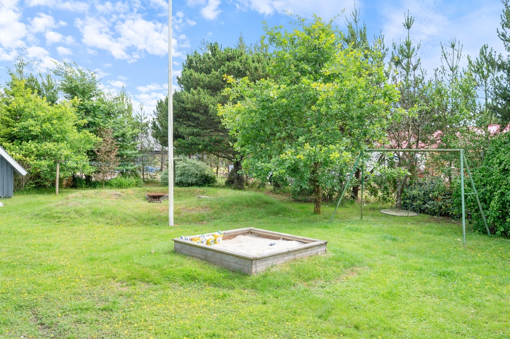 Für die Kleinen gibt es einen Sandkasten und eine Schaukel. Gemeinsam könnt ihr die 3000 m² große Rasenfläche erkunden, die von hohen Bäumen umgeben ist und gemütliche Plätze zum Beisammensein, Ballspielen oder für eine Partie Wikinger bietet.
