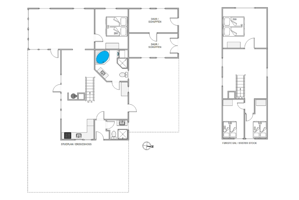 Die 4 Schlafzimmer sind mit Doppelbetten ausgestattet, und auf moderne Annehmlichkeiten wie Waschmaschine, Wäschetrockner, Geschirrspüler und eine energiesparende Wärmepumpe braucht ihr auch im Urlaub nicht verzichten.