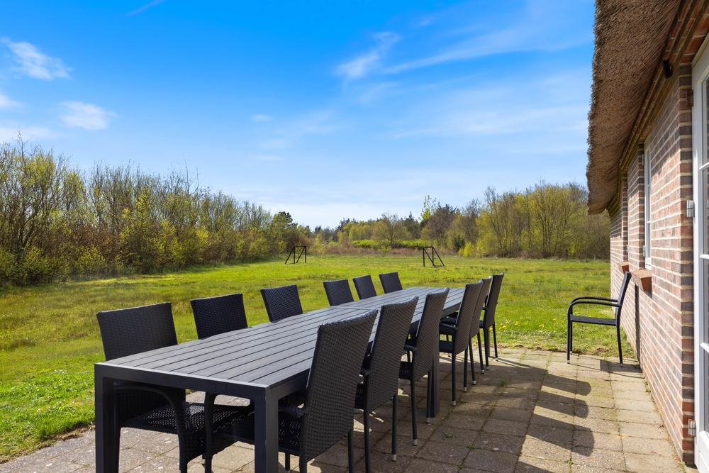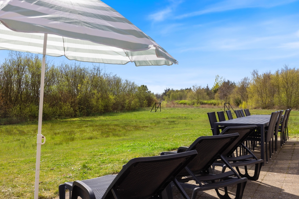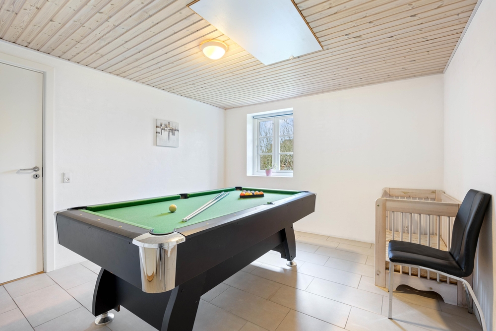 Das Ferienhaus im Dommersøvej 33 verfügt über einen Aktivitätsraum, in dem sich ein Billardtisch befindet. Hier könnt ihr nach Herzenslust spielen und kleine Wettbewerbe veranstalten. Eure Kinder können draußen auf der Wiese toben, Fußballspielen, schaukeln und im Sandkasten buddeln. Während die Kinder beschäftigt sind, habt ihr die Möglichkeit auf den Sonnenliegen zu entspannen. Schnappt euch ein gutes Buch, legt die Füße hoch und genießt eine Tasse Kaffee. Milde Sommertage lassen sich am besten mit einem Grillabend abschließen. Der große Gartentisch eignet sich hervorragend, um alle draußen zu versammeln und gemeinsam zu Essen.