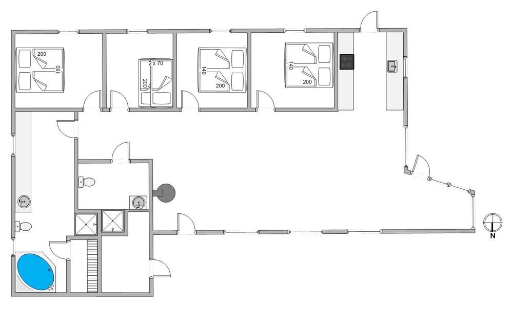 Das schöne Ferienhaus ist gemütlich und hell eingerichtet ist. Es bietet euch 4 Schlafzimmer, davon drei mit Doppelbetten und eins mit einem Hochbett ausgestattet. Das Ferienhaus verfügt über 2 schöne Badezimmer mit Fußbodenheizung und Duschkabine.