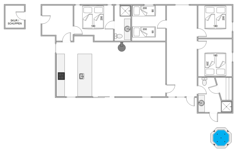 Sucht ihr ein modernes und trotzdem typisch skandinavisches Ferienhaus mit eigener Wellnessabteilung und Aktivitätsmöglichkeiten ? dann seid ihr im Dortheasvej 30 genau richtig. Dieses im Jahre 2023 neu gebaute Sommerhus bietet auf 146 qm, für bis zu bis zu 8 Personen, viele tolle Extras. Auch eure beiden Hunde* dürfen sich auf gemeinsamen Ferien und lange Strandspaziergänge mit euch freuen.