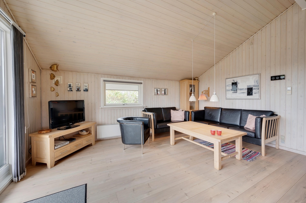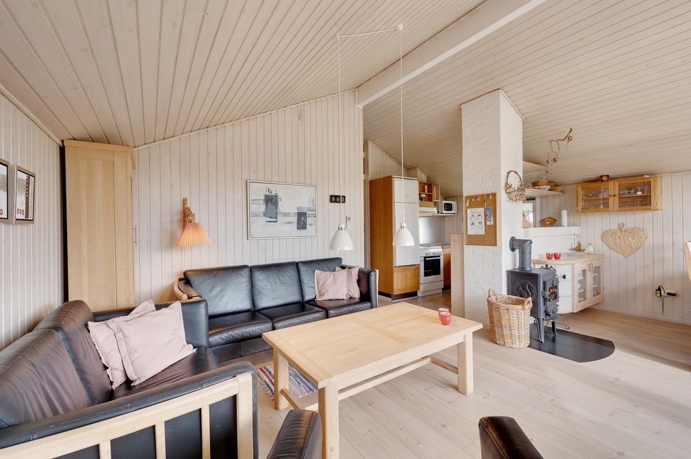 Vom Wohnzimmer mit dem wärmenden Kaminofen habt ihr eine tolle Aussicht über die prächtige Natur in Bjerregård. Das Ferienhaus kann mit einer energiesparenden Wärmepumpe beheizt werden, welche im Sommer auch praktisch als Klimaanlage genutzt werden kann. Im Wohnzimmer sind u.a. TV mit Parabolantenne, DVD-Player, Radio und gratis Internet mit WLAN-Zugang für euch vorhanden.