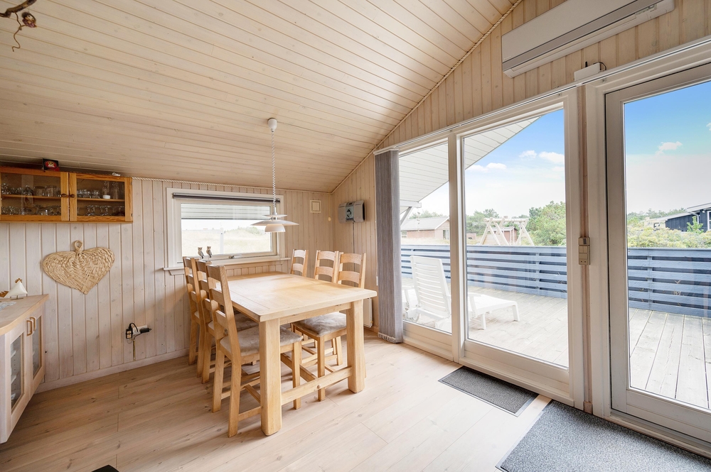 Ein sehr gepflegtes und helles Ferienhaus auf einem Naturgrundstück erwartet euch im Dortheasvej 31A in Bjerregård an der dänischen Westküste. Das gemütliche Sommerhaus hat eine herrliche, geschlossene Terrasse ? hier kannst du in Ruhe die frische Luft genießen, denn der kilometerlange, schöne Sandstrand ist nur 650 m entfernt. Mit bis zu 6 Personen könnt ihr hier einen entspannten Urlaub erleben. Ab 2025 dürfen euch bis zu 2 Hunde mit in euren Urlaub begleiten und es sind bis zu 4 Gäste willkommen.