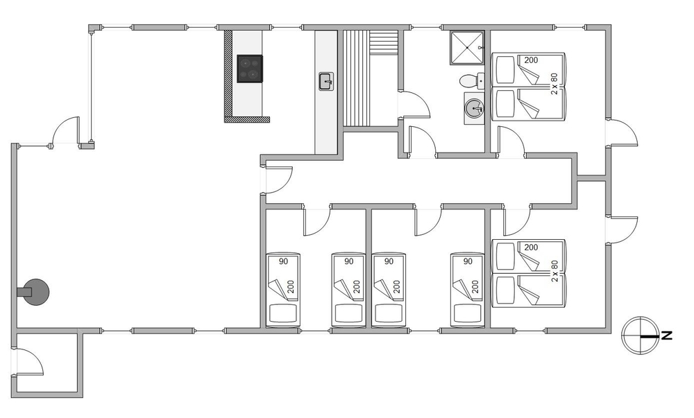 Das Ferienhaus bietet Platz für bis zu 8 Personen, verteilt auf 4 gemütliche Schlafzimmer. Zwei Zimmer sind mit Doppelbetten ausgestattet, die anderen beiden verfügen jeweils über zwei Einzelbetten ? perfekt für Familien mit Kindern oder befreundete Paare.