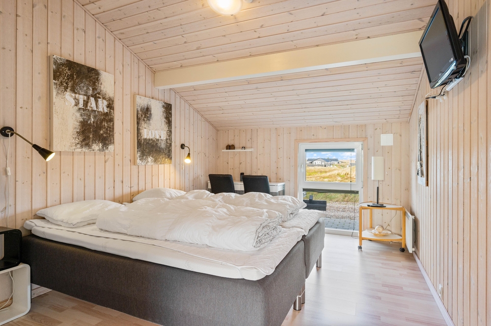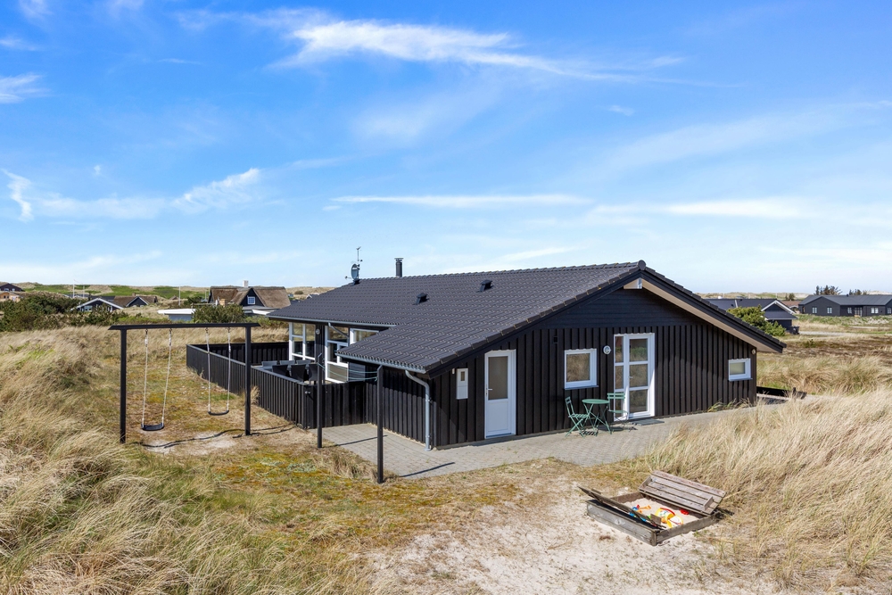 Der feine Sandstrand an Jütlands Westküste ist in wenigen Minuten zu erreichen, denn dieser liegt nur 500 Meter entfernt. Wenn es darum geht, die Umgebung zu erkunden, gibt es auf Holmsland Klit zahlreiche Möglichkeiten. Vom idyllischen Ringkøbing Fjord mit seinen vielen kleinen gemütlichen Häfen, bis zum lebhaften Fischerhafen in Hvide Sande, wo es alle Möglichkeiten für Aktivitäten wie Wasserski, Surfen und Angeln sowie Shopping und Restaurants gibt.