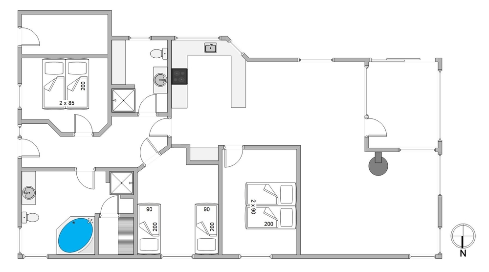 Der helle Wintergarten vermittelt das Gefühl, mitten in der Natur zu sein. Besonders zu erwähnen ist die Wellnessabteilung im großen Badezimmer mit Fußbodenheizung, wo ihr im Whirlpool und in der Sauna entspannen könnt. Beheizt wird das Ferienhaus mit einer energiesparenden Wärmepumpe, die im Sommer als Klimaanlage genutzt werden kann. Natürlich gibt es in hier auch kostenloses WLAN.